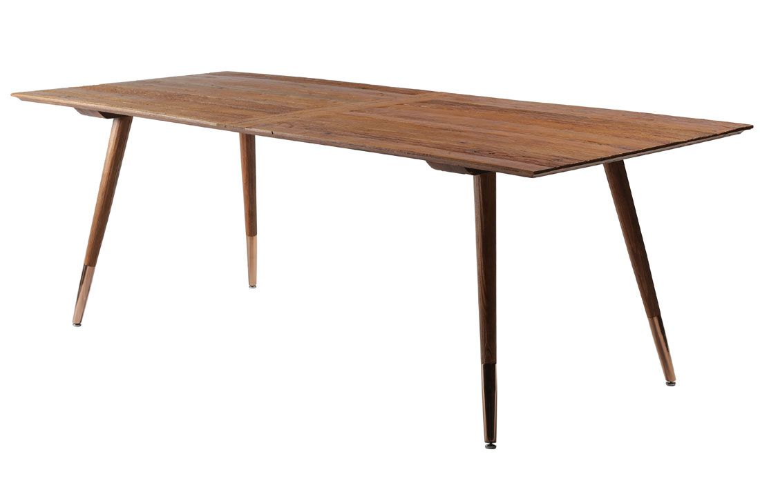 Rectangular dining table in solid wood ELM and feet with metal covers covers