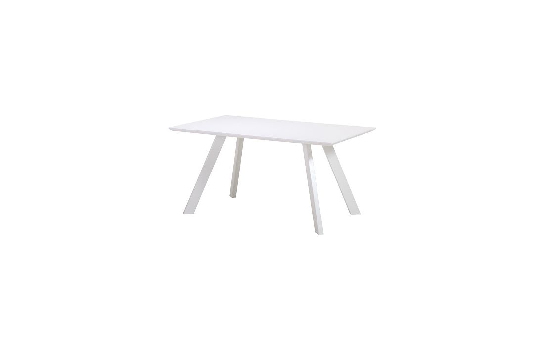 Fixed table with lacquered white high gloss top and structure in painted metal blank