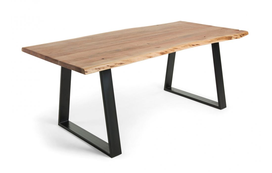Dining table with metal structure and natural solid acacia wood top.Recipient :