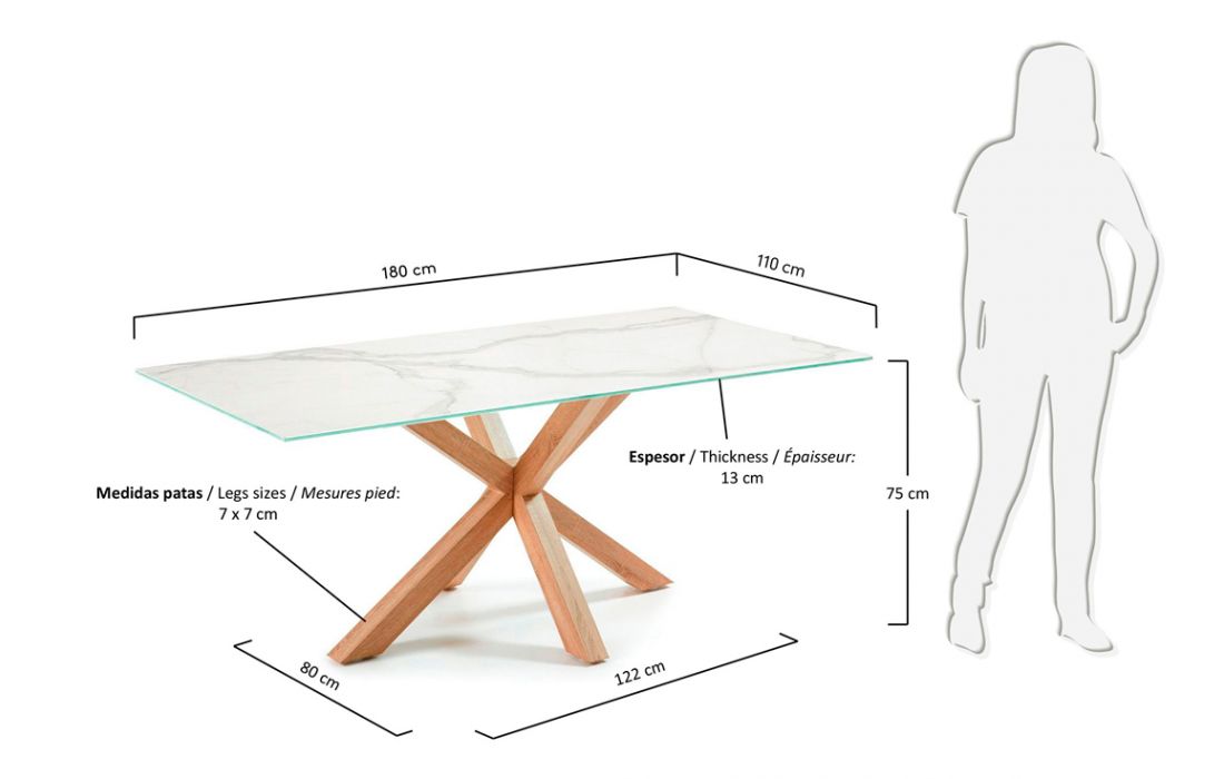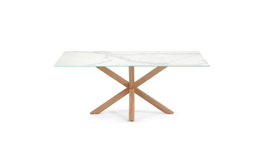 Dining table with metal frame in oak finish, high tech porcelain slab top with glass holderRecipient :