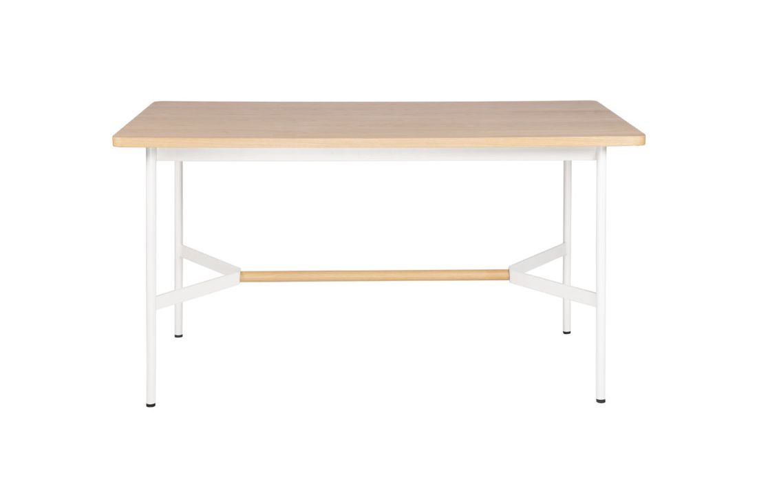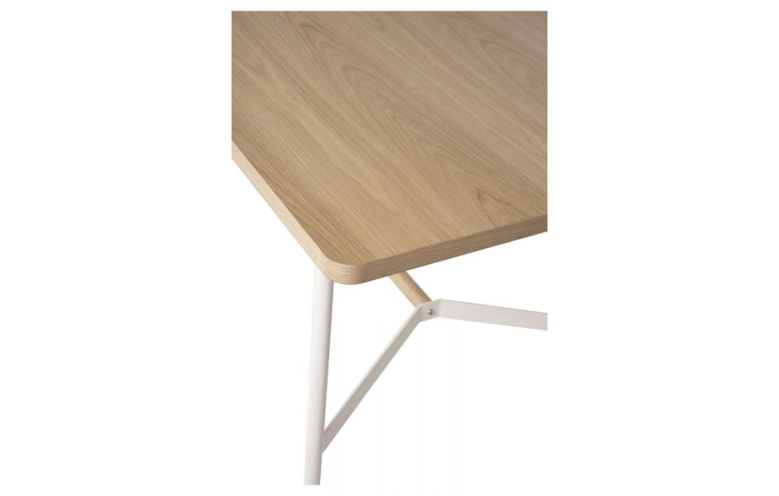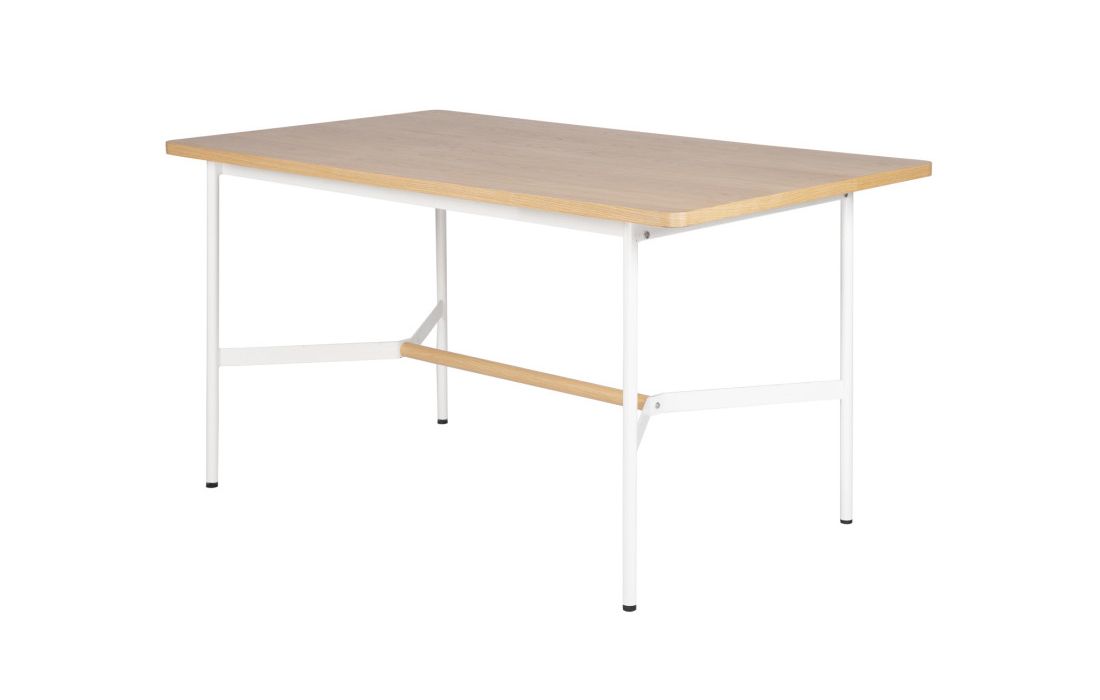 Rectangular dining table with white metal legs and fixed top in oak veneer in oak leaf