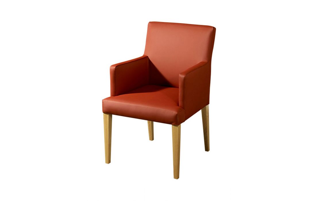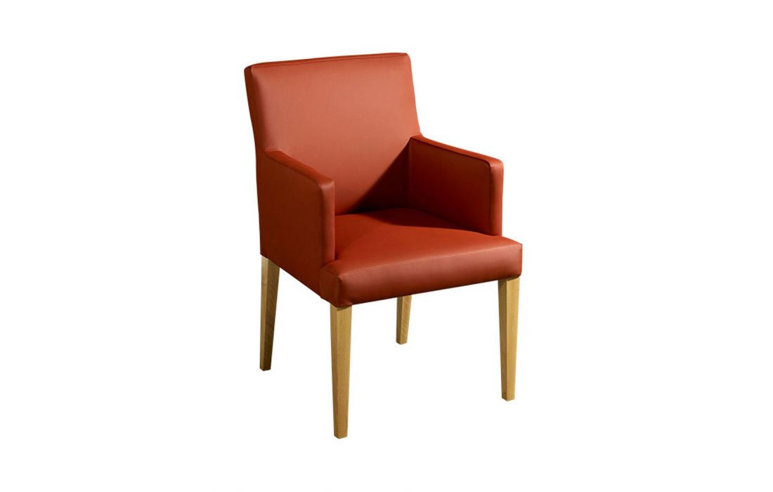 Armchair in solid wood with upholstered in fabric or synthetic leather in various finishes possible