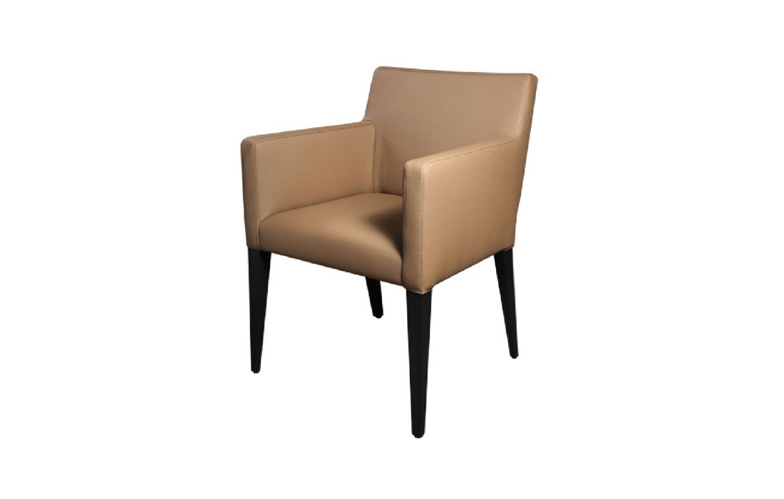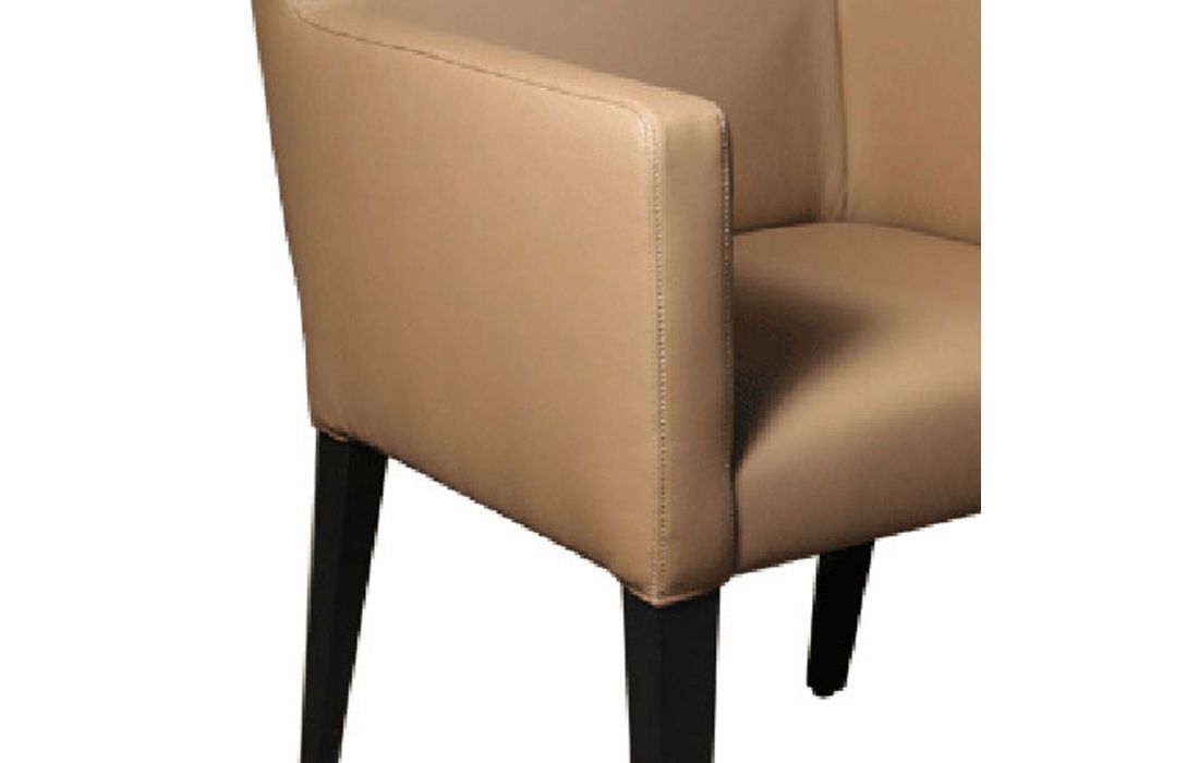 Armchair in solid wood with upholstered in fabric or synthetic leather in various finishes possible