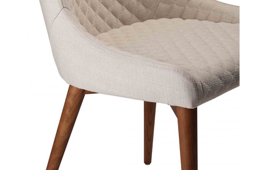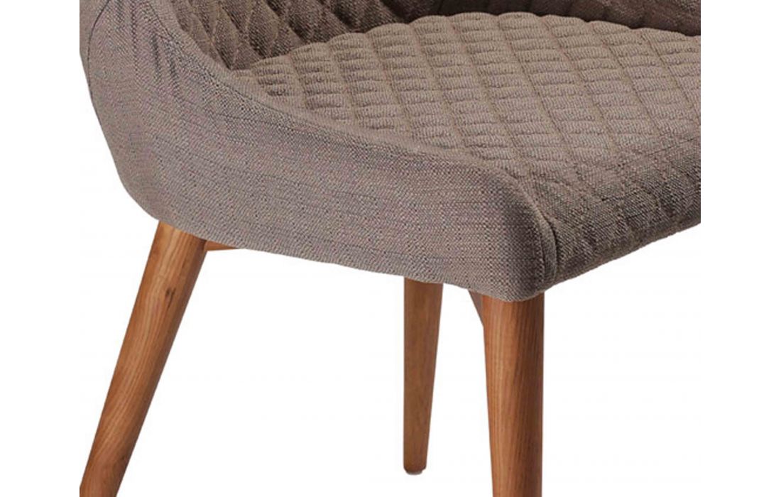 Armchair with upholstered in light brown fabric, black or beige with legs in solid walnut wood
