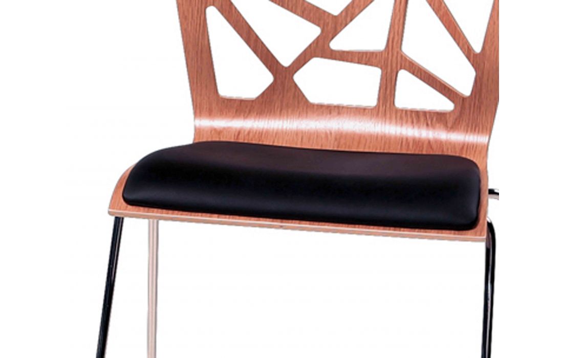 Walnut Chair and black pu seat with chromed metal feet