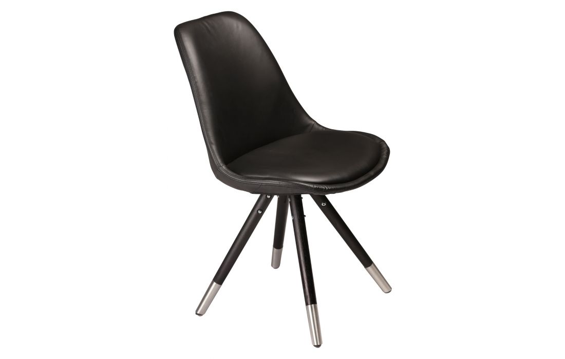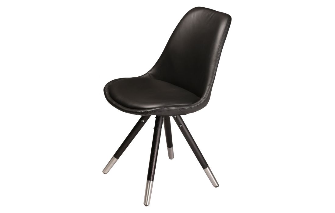 Chair with padded synthetic leather or black genuine leather, with feet in black and metal lid