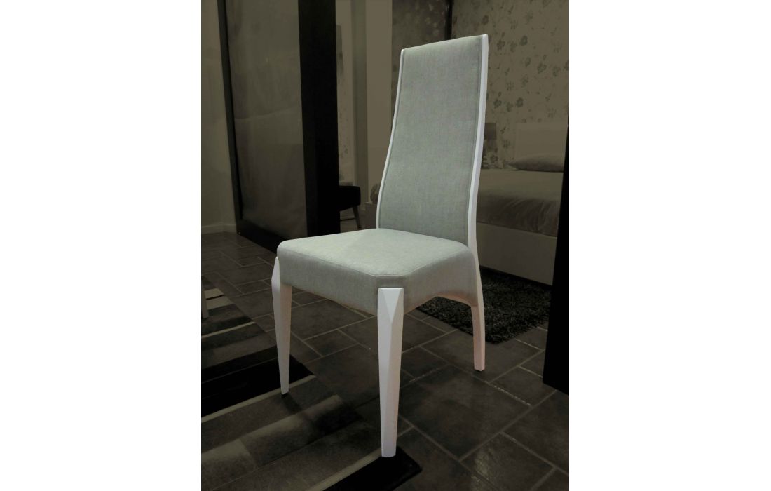 Chair with upholstered in fabric and feet in lacquered high-gloss, lacquered matt or wood sheet