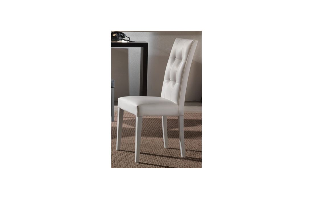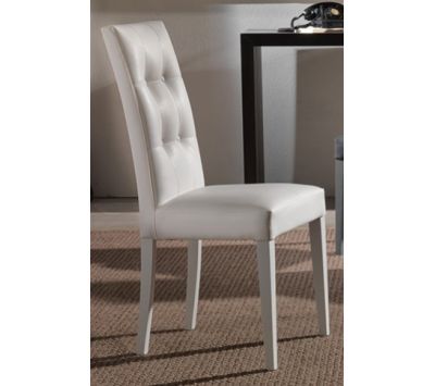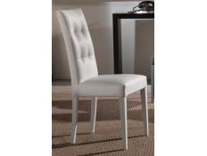 Chair with structure in solid beech wood, lacquered in white, seat and coast in white synthetic leather.