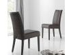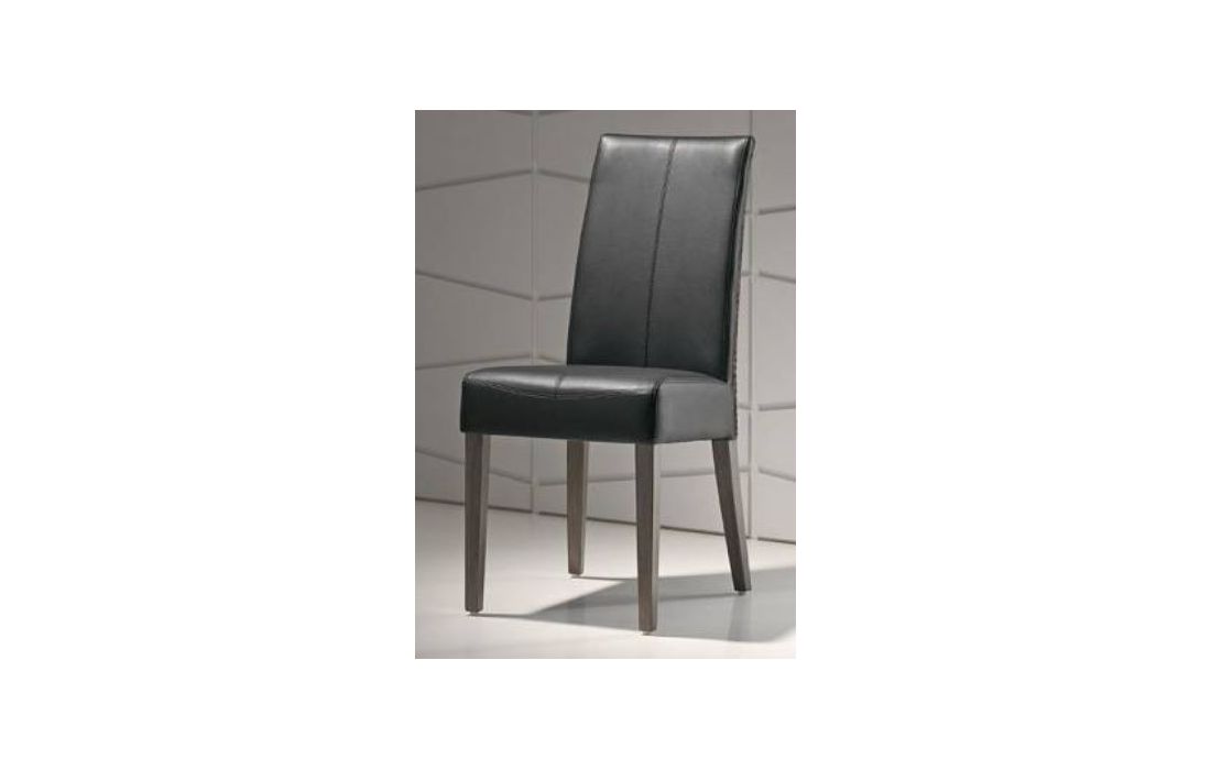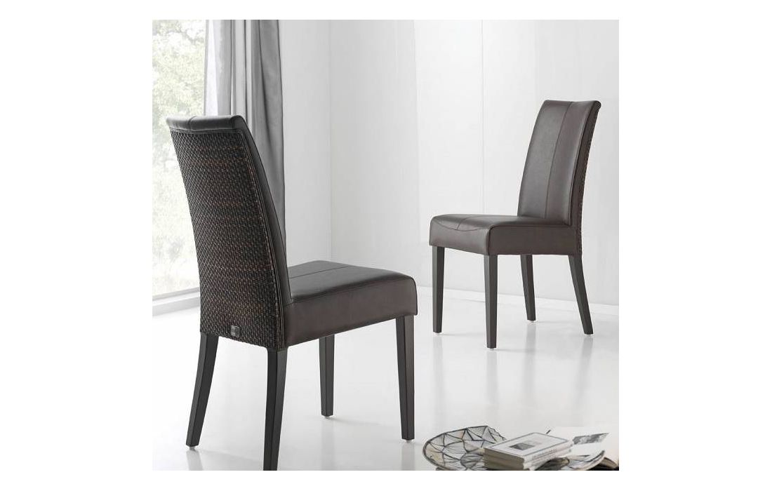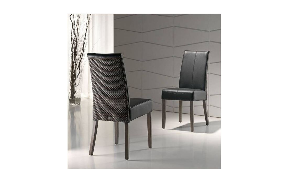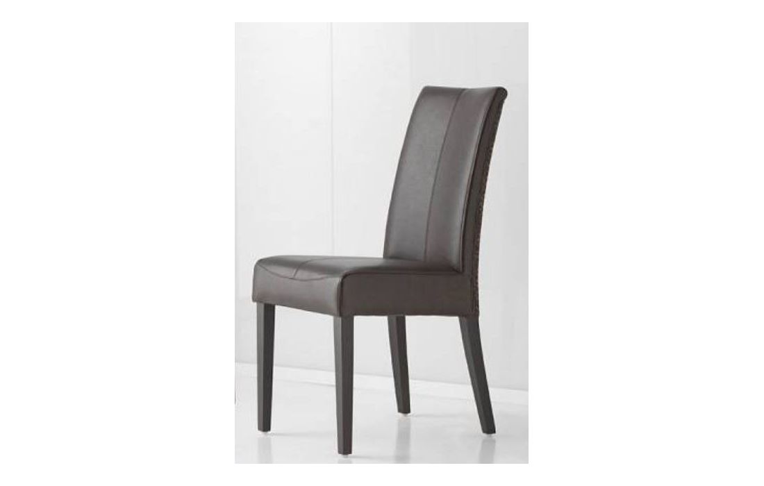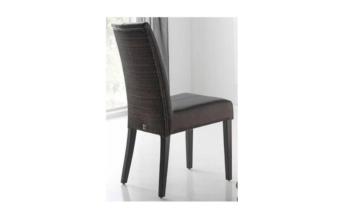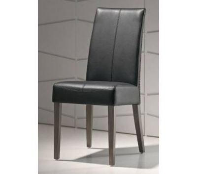 Chair with seat in synthetic leather of black or brown color and feet in wood.