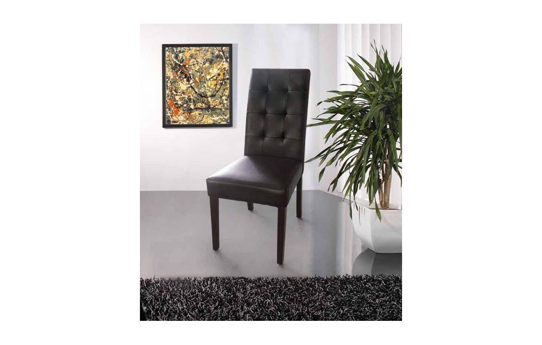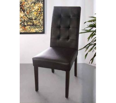 Chair with seat and coast in synthetic leather of brown color and feet in wood.