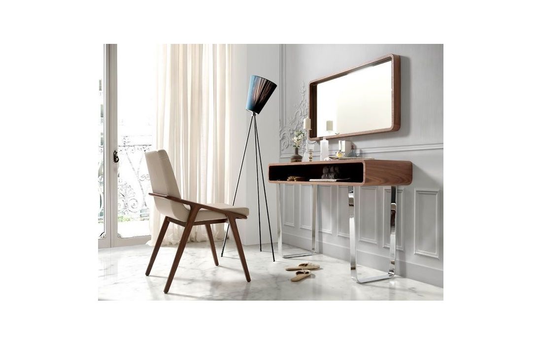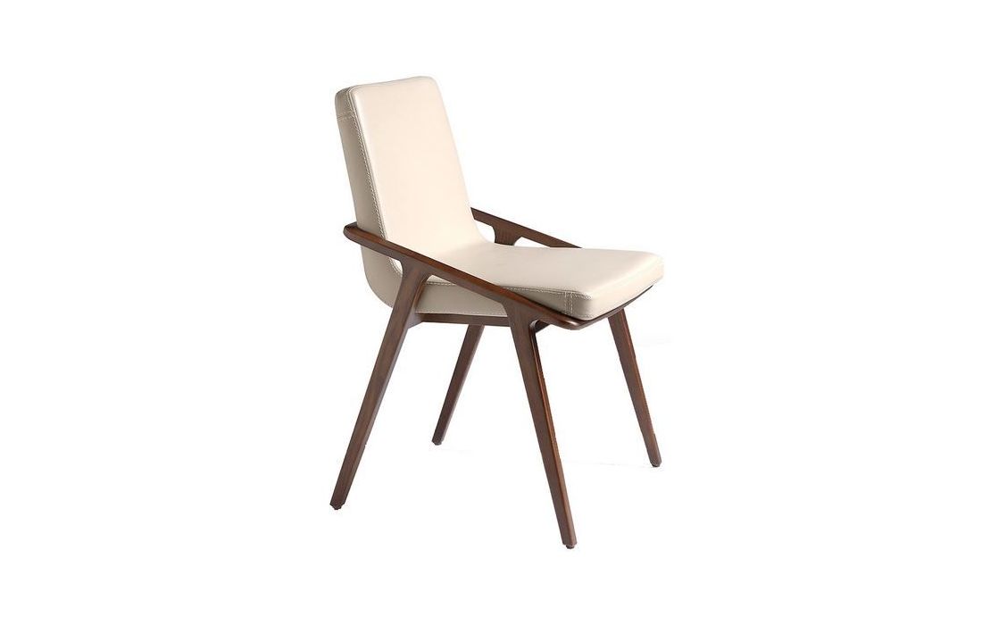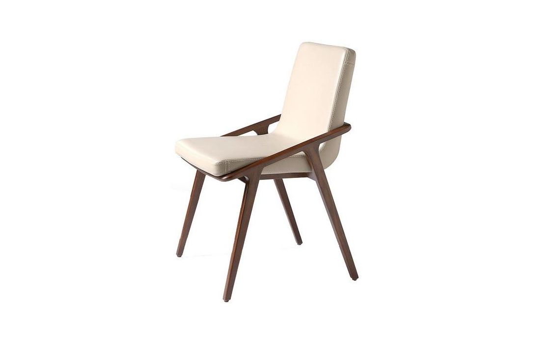Modern design chair with seat and back upholstered in synthetic leather and walnut-colored wooden legs, with its avant-garde and timeless styleRecipient :