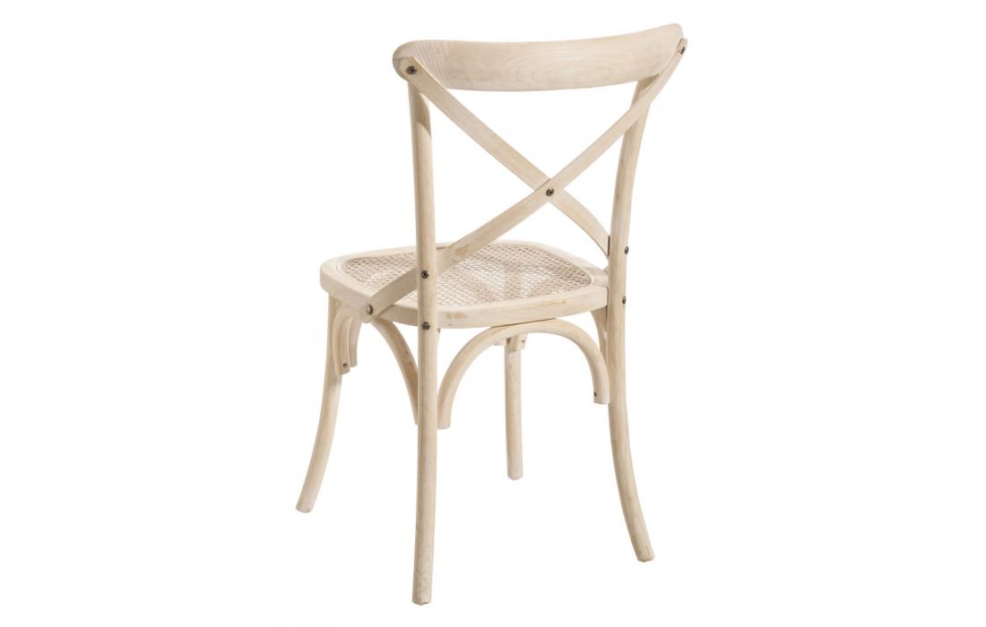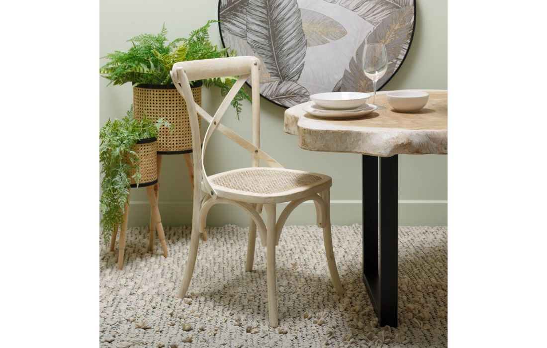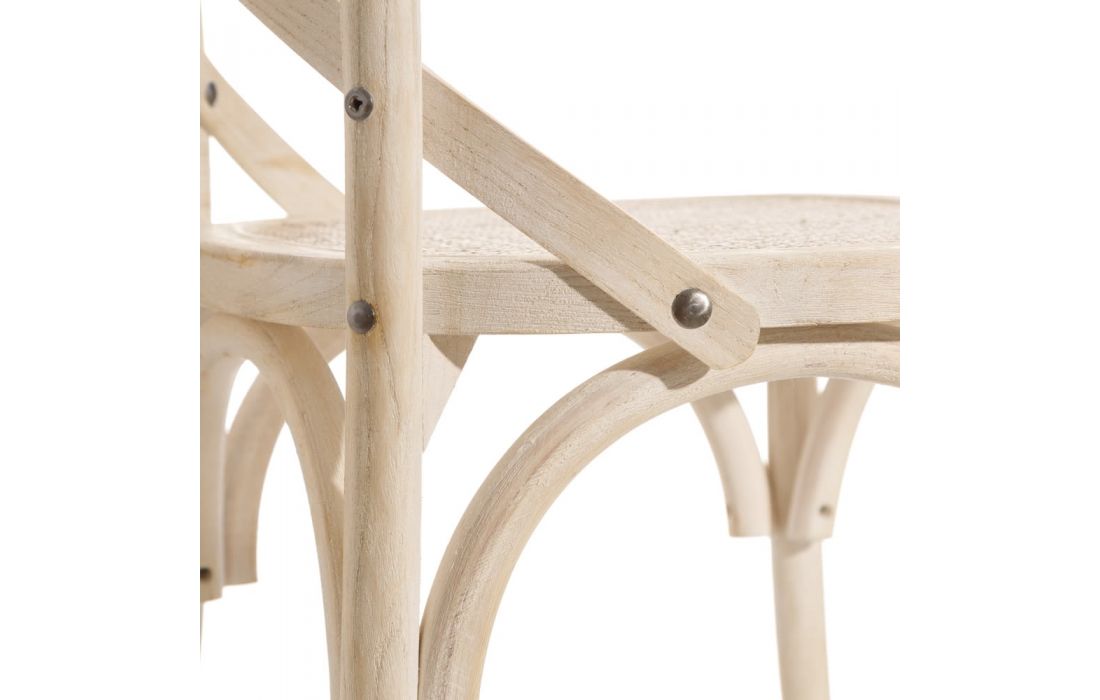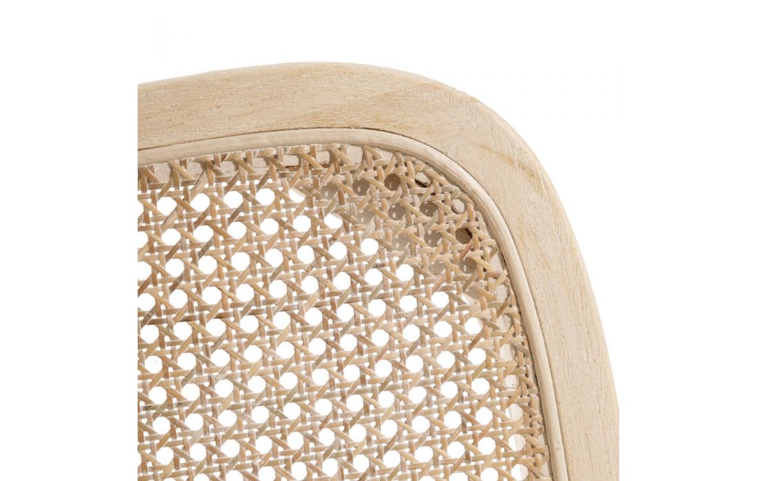 Chair with natural colored rattan structure.