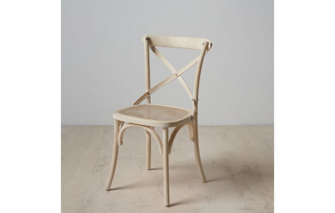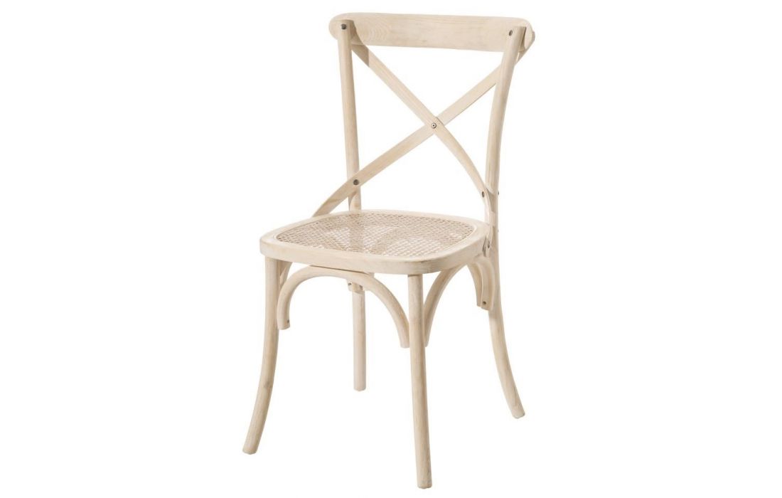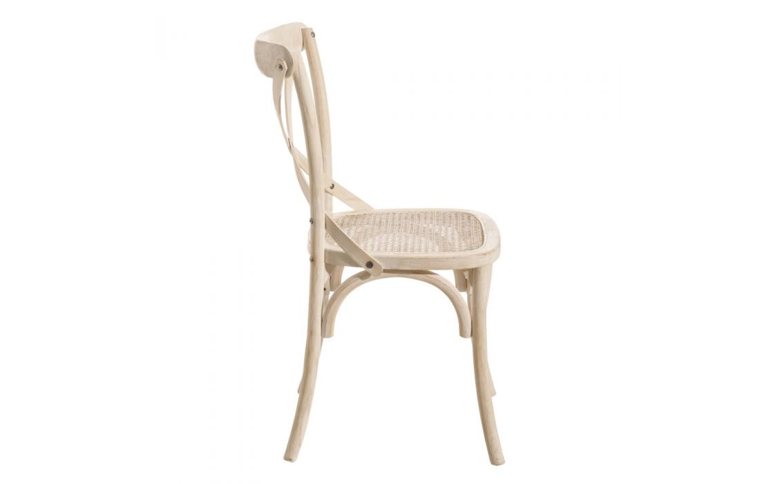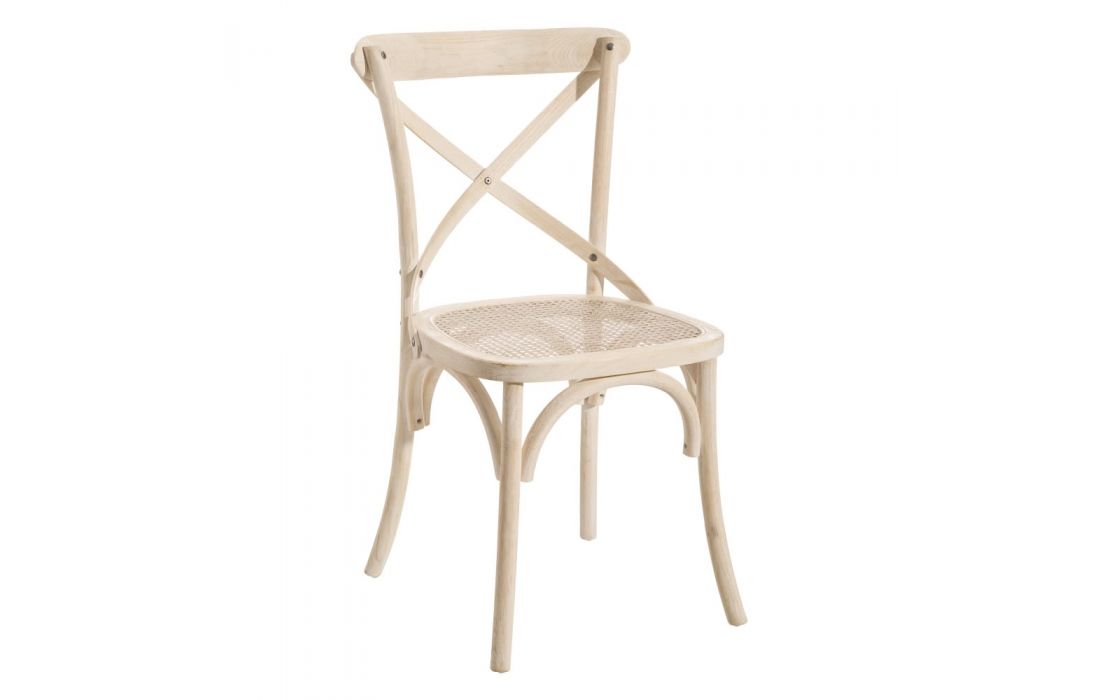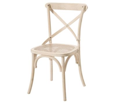 Chair with natural colored rattan structure.