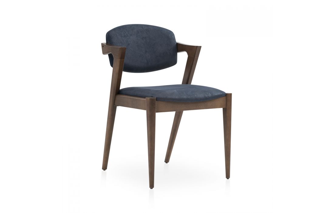 Chair in ash wood and fabric upholstery in the various possible finishes.
