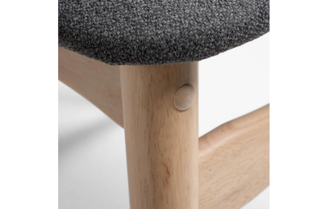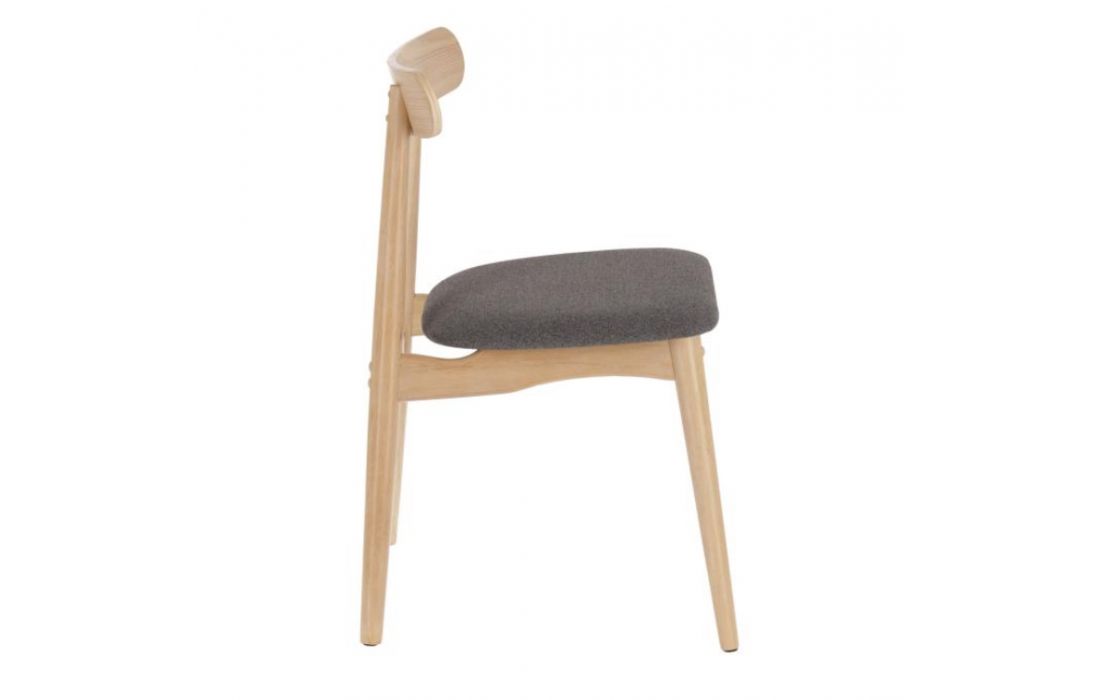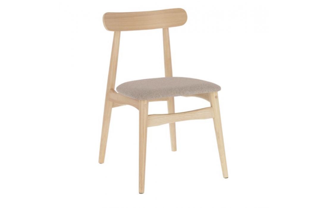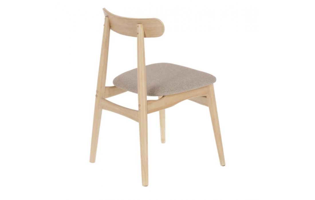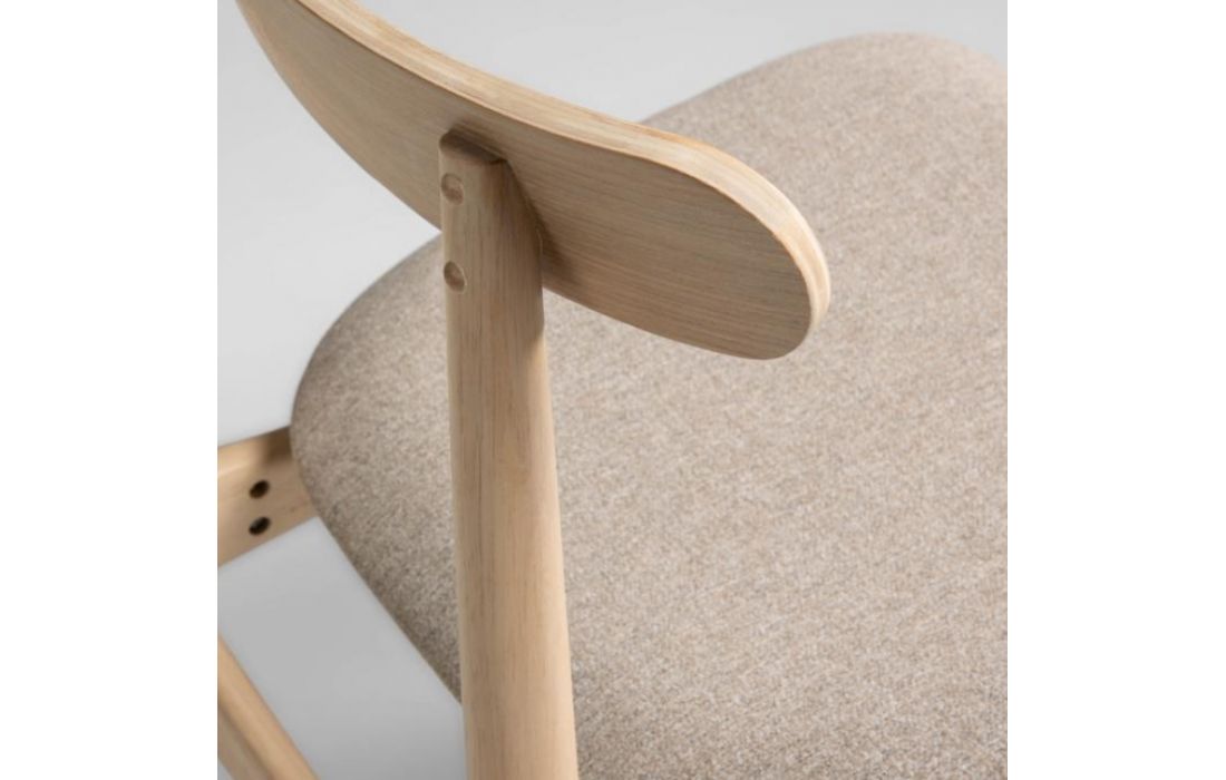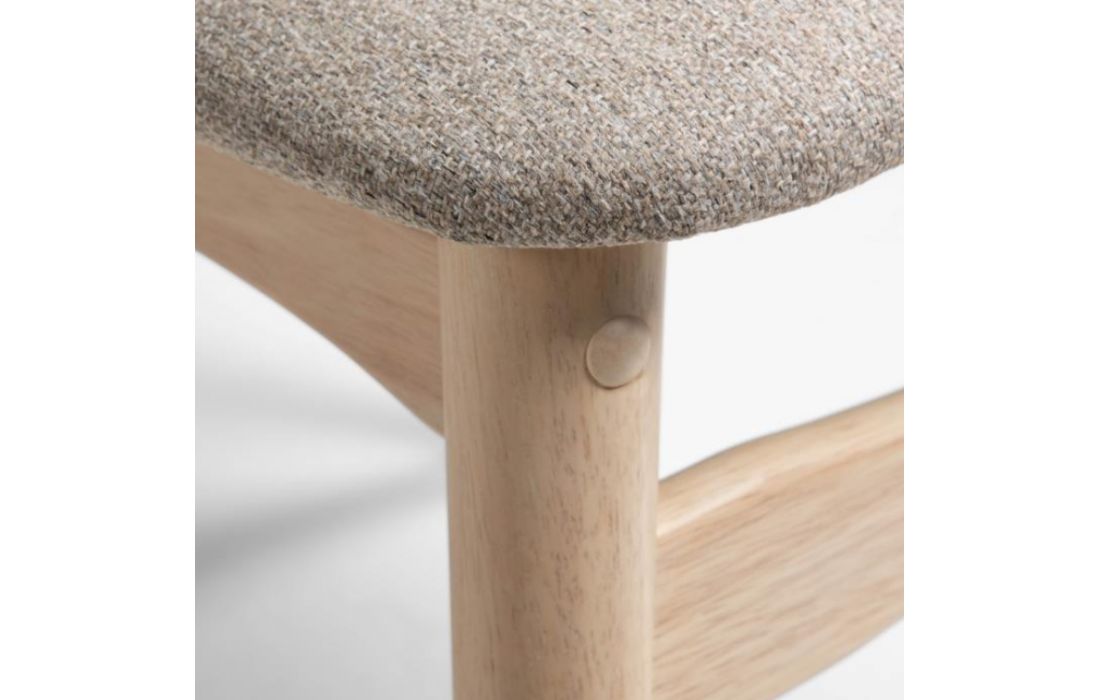 Chair in solid rubber wood and fabric seat.