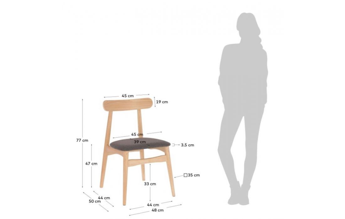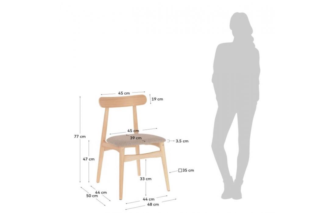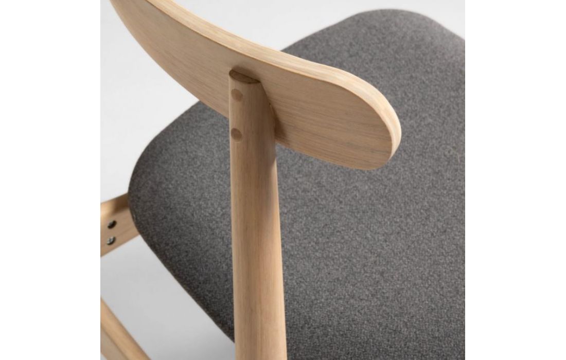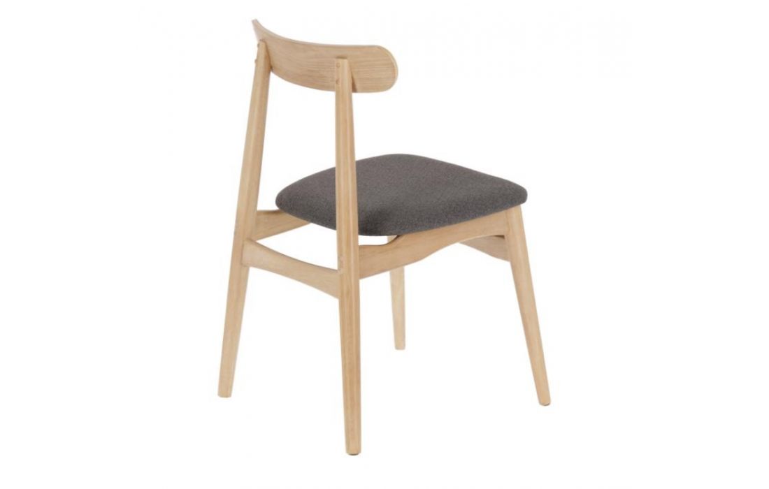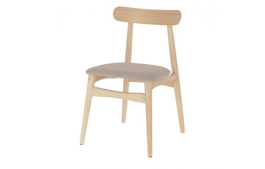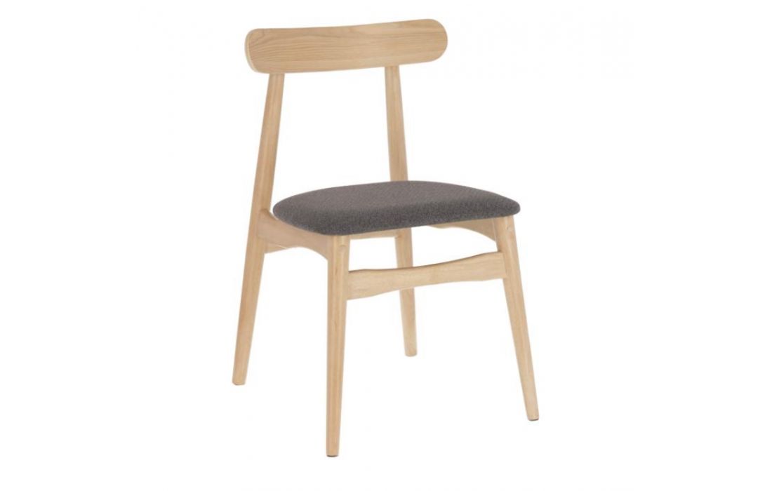 Chair in solid rubber wood and fabric seat.