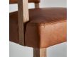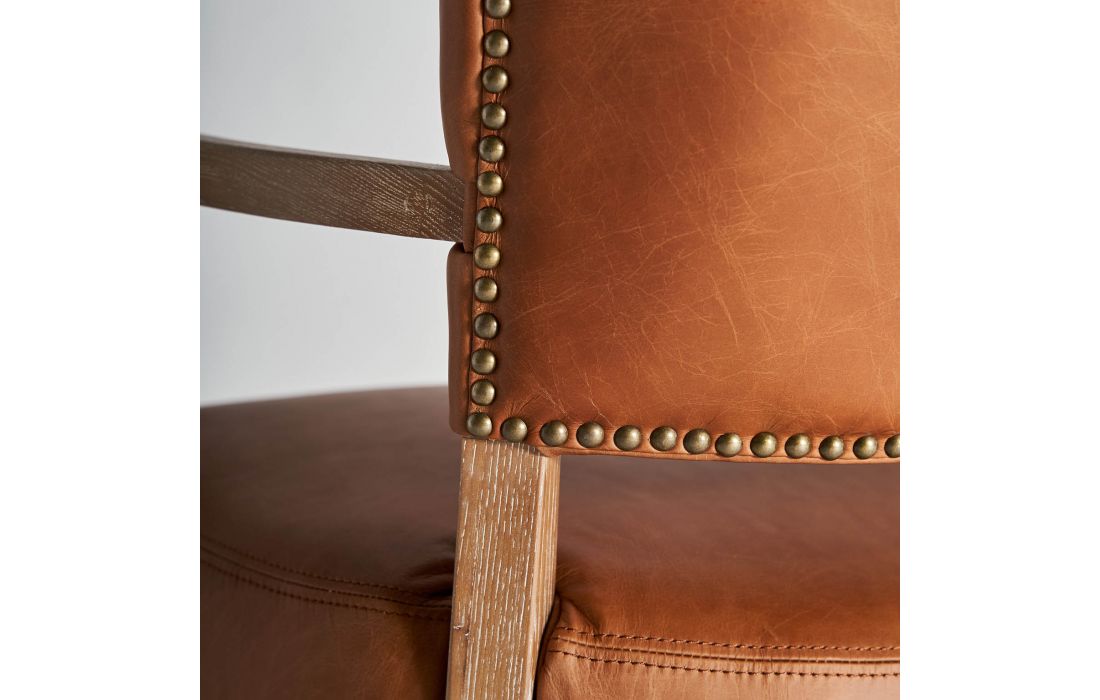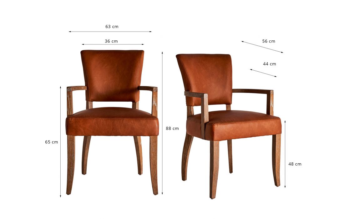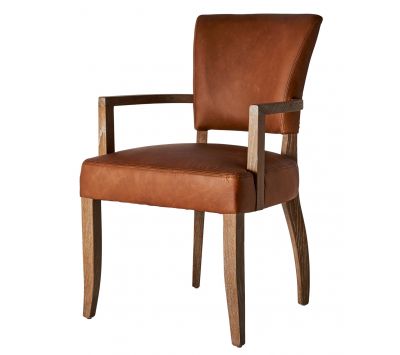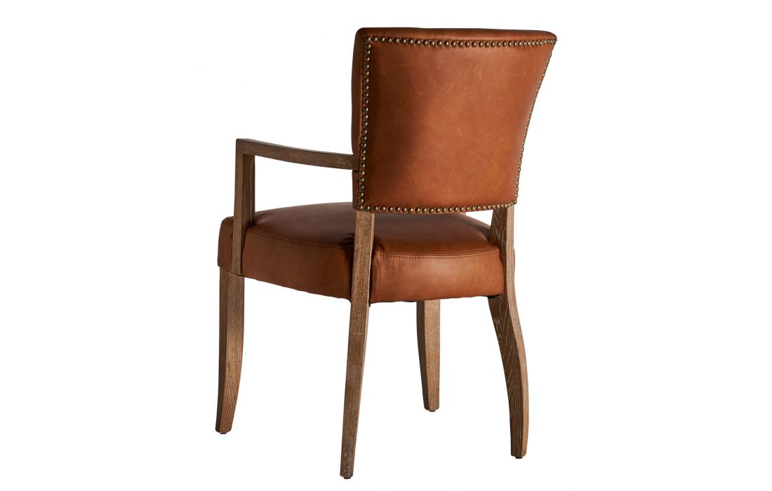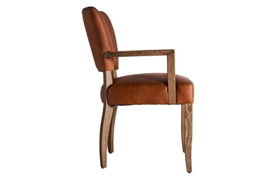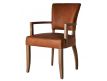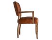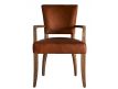 Chair with armrests in oak wood oak with a decape finish upholstered in synthetic leather