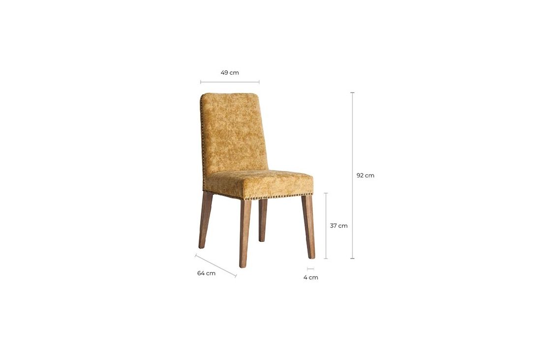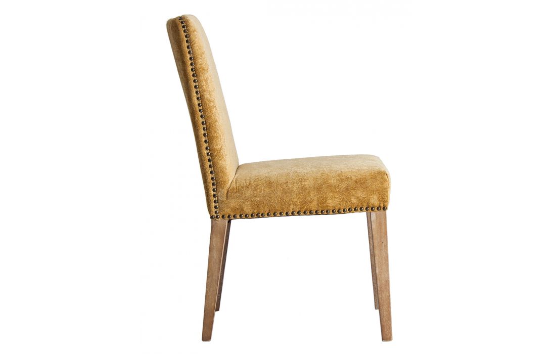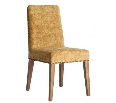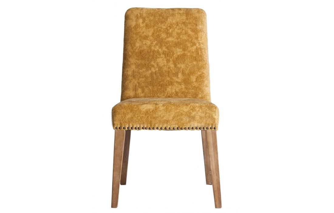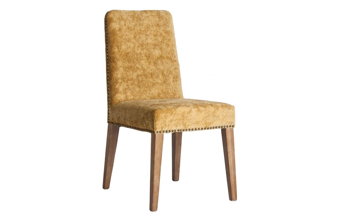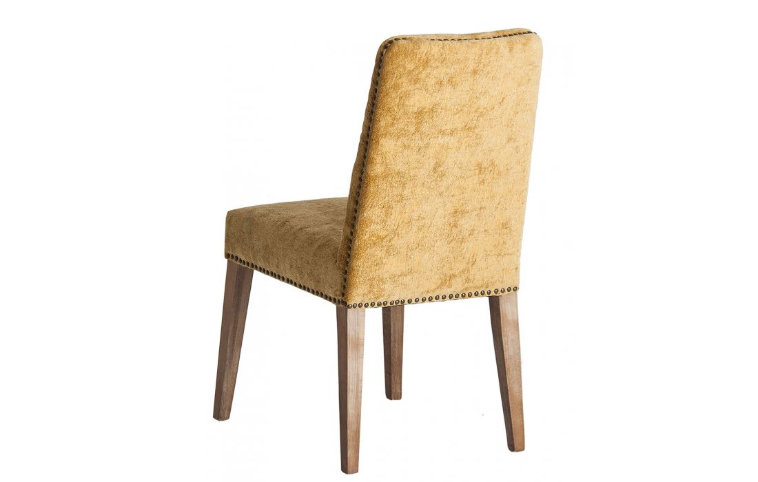 Chair in fir wood upholstered in ocher colored polyester fabric