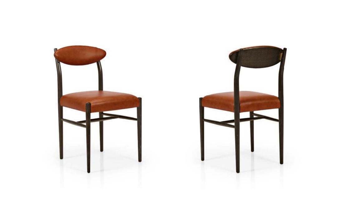 Dining chair upholstered in synthetic leather and leg structure in beech wood.
