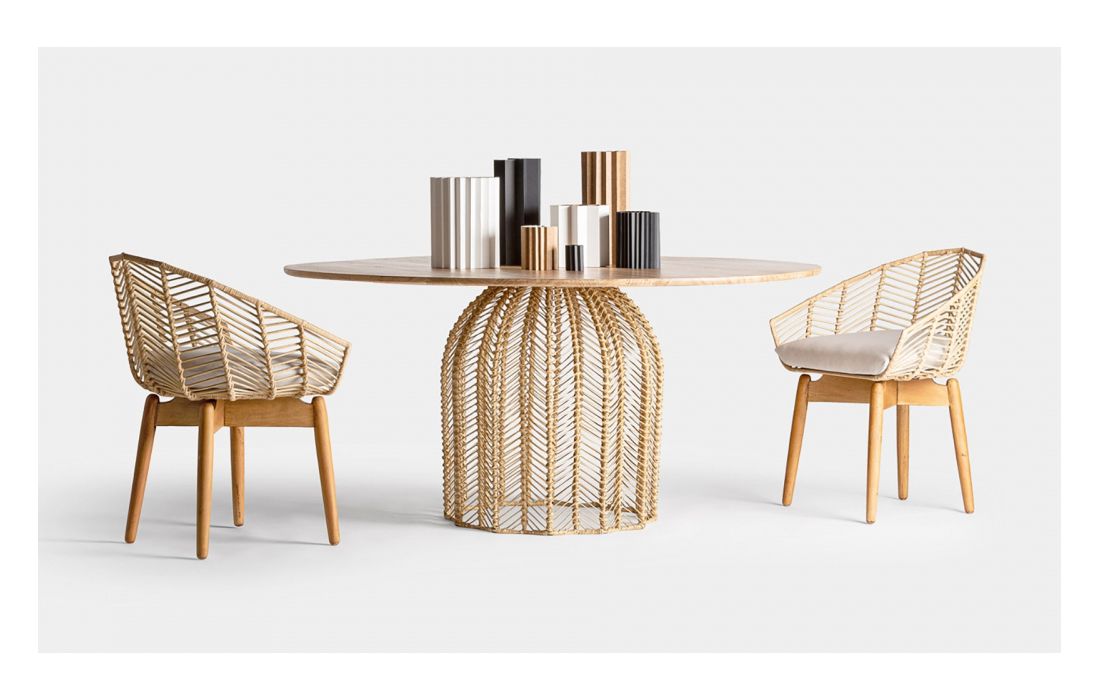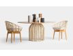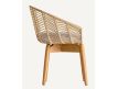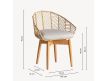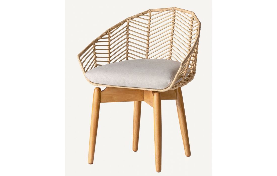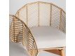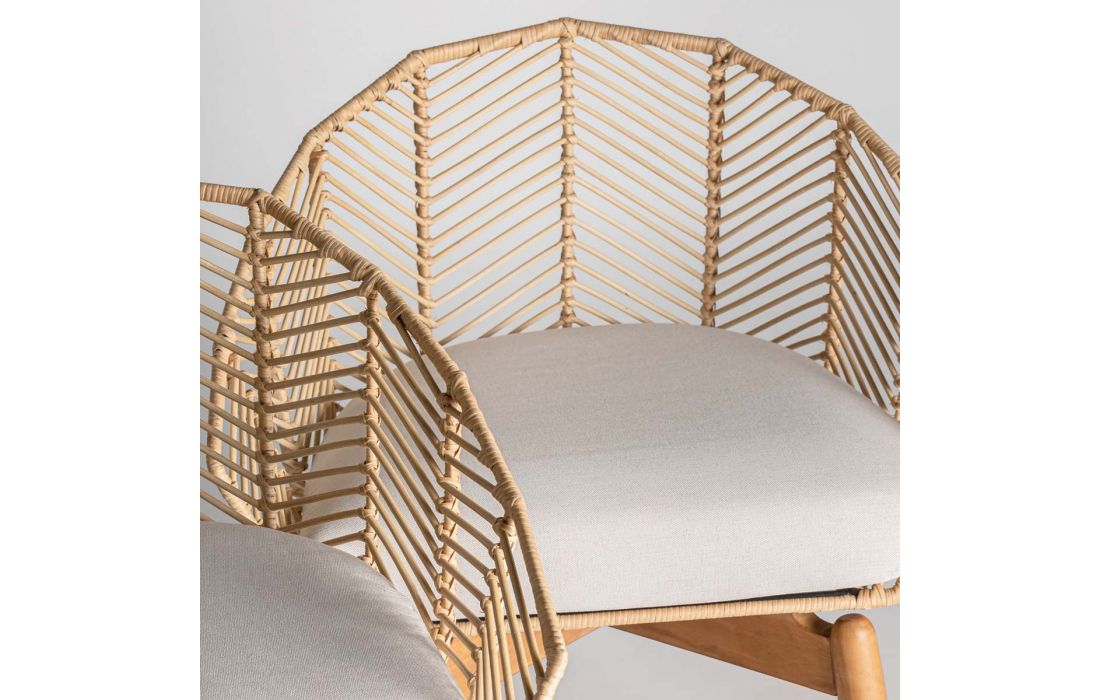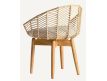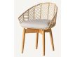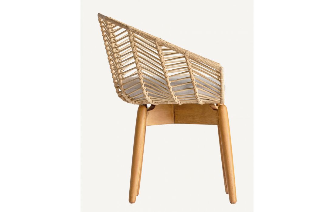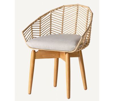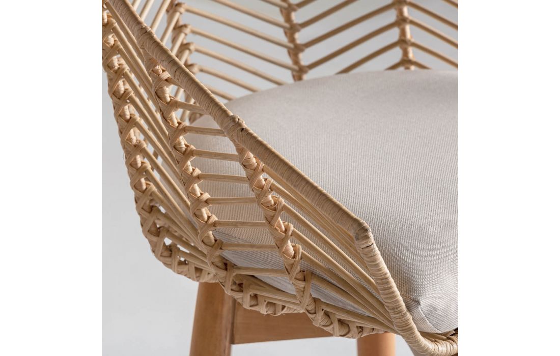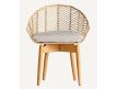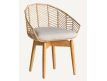 Armchair in wood and rattan natural color and seat upholstered in cotton fabric