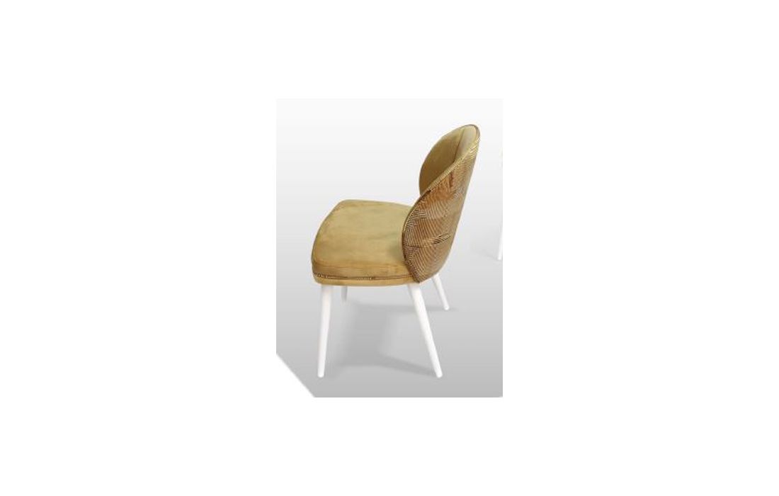 Chair with upholstered arms with solid ash wood feet in the various possible finishes and coatings.