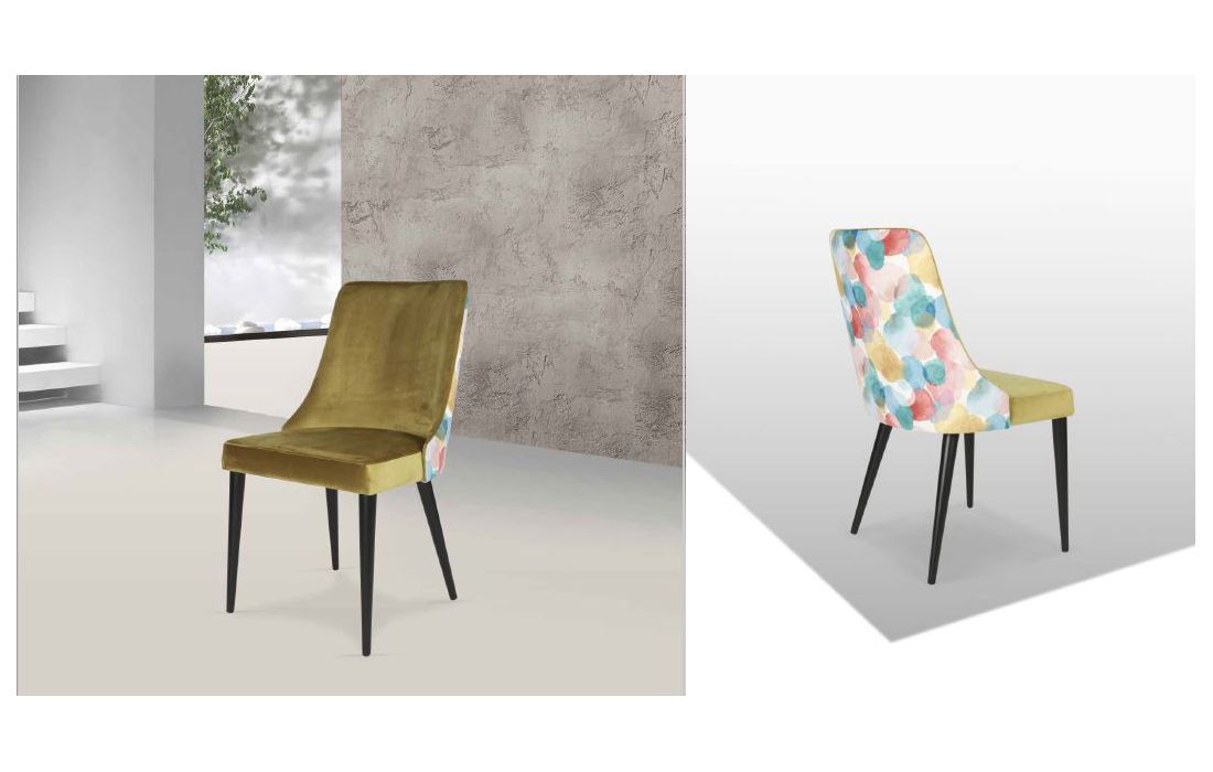 Chair with upholstered arms with solid ash wood feet in the various possible finishes and coatings.