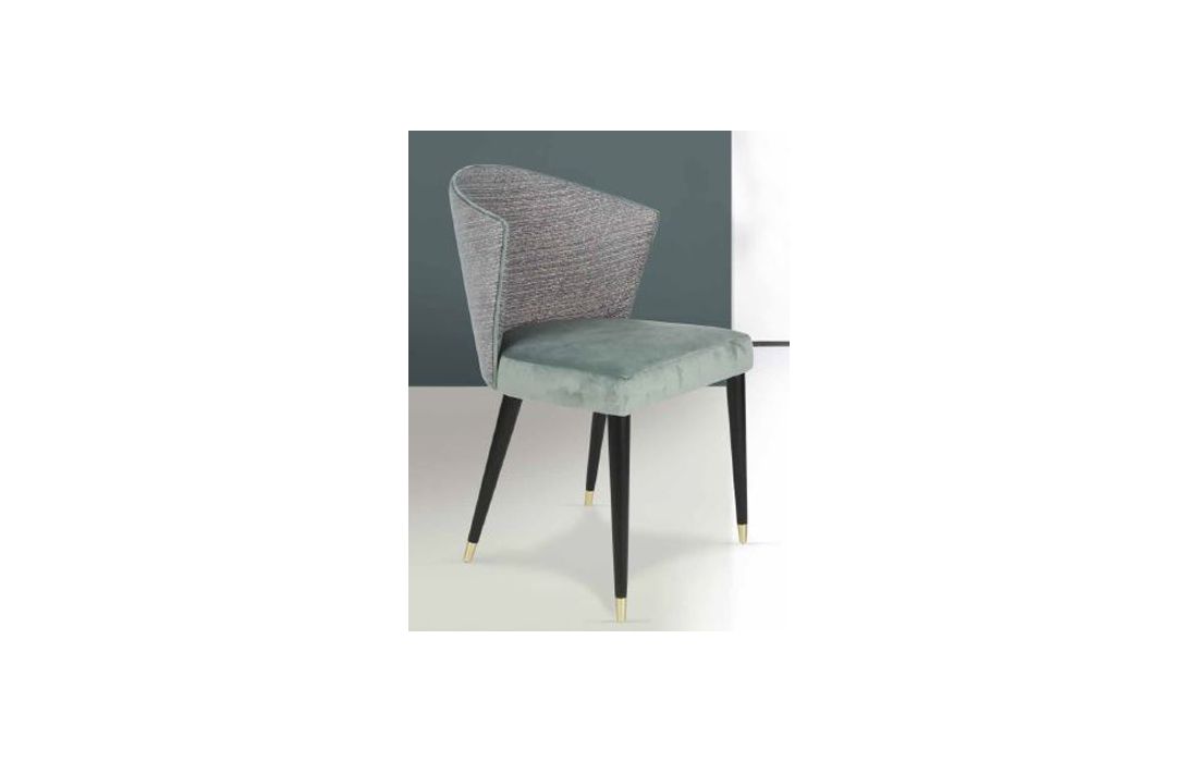 Upholstered chair with feet in solid ash wood and golden metal in the various possible finishes and finishes.