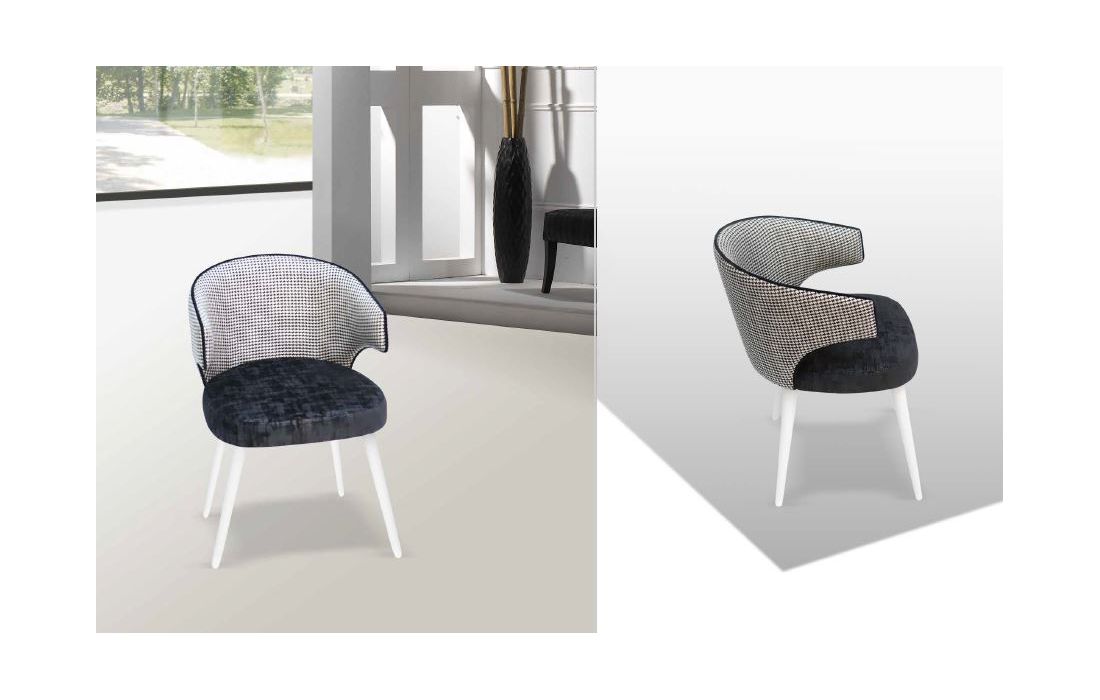 Upholstered chair with feet in solid ash wood in the various possible finishes and coverings.