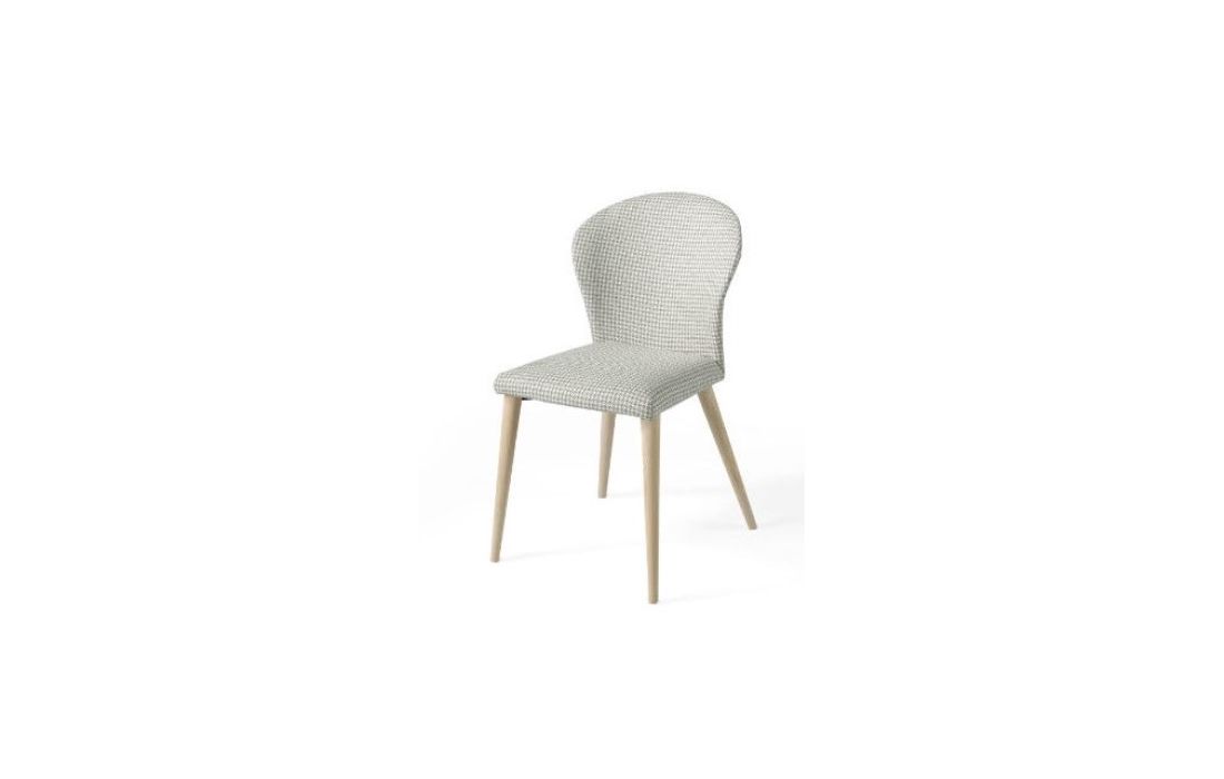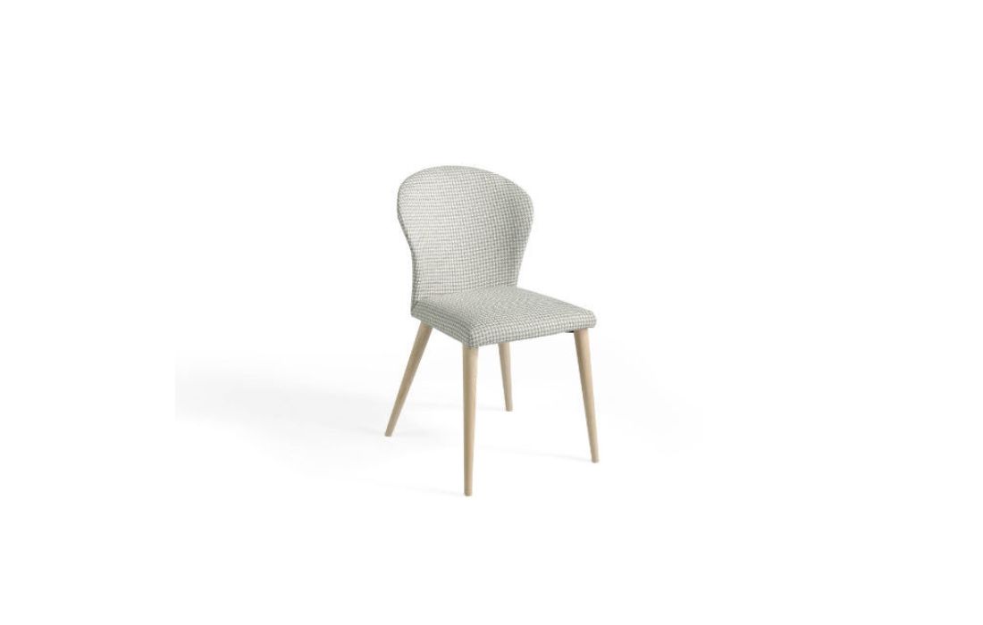 Fabric chair with wooden legs.