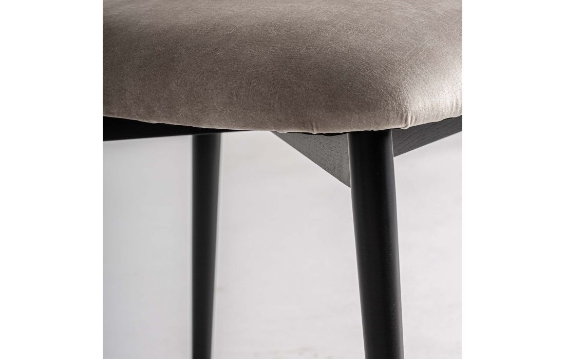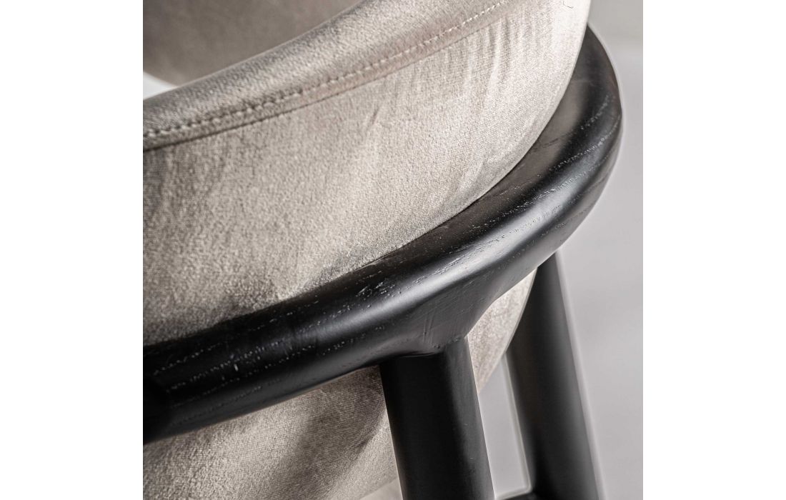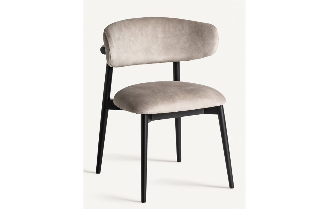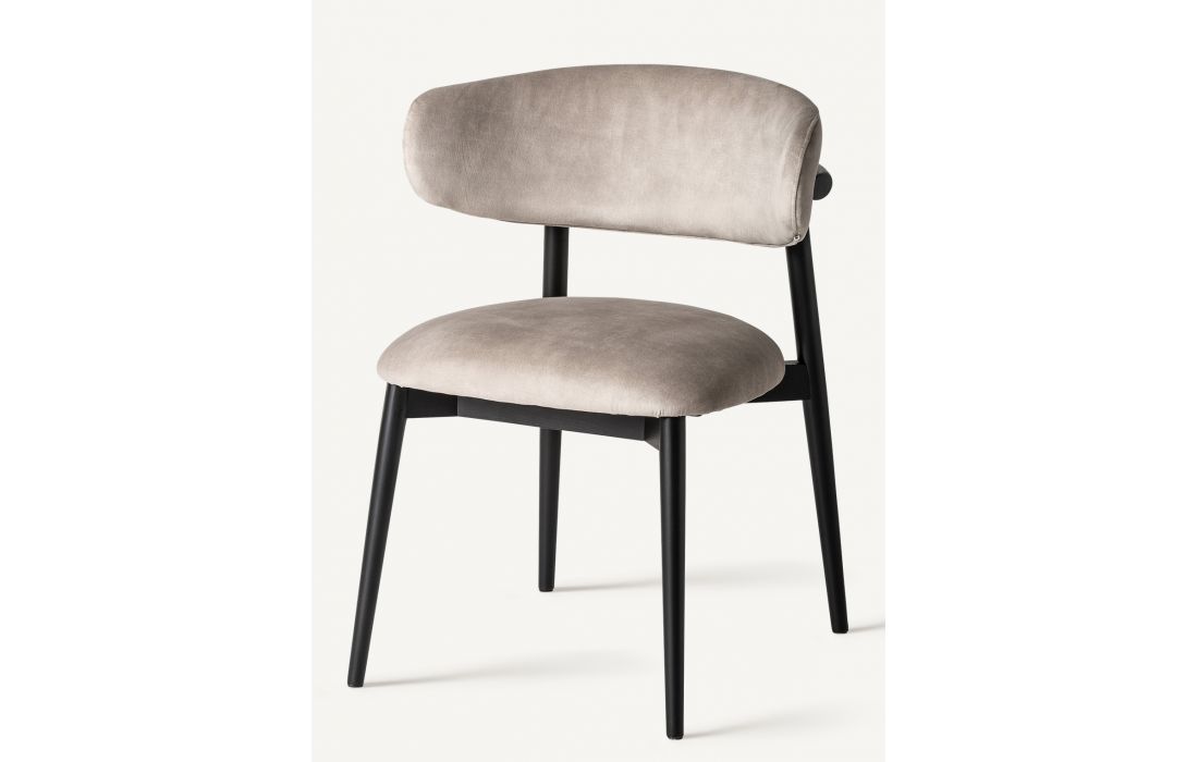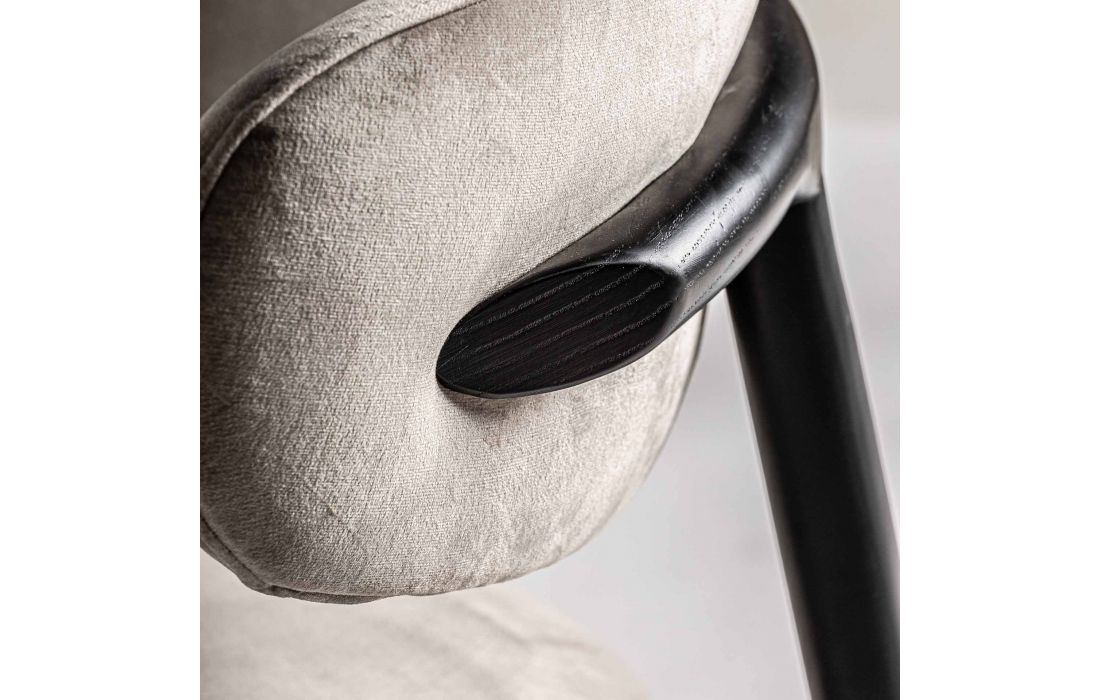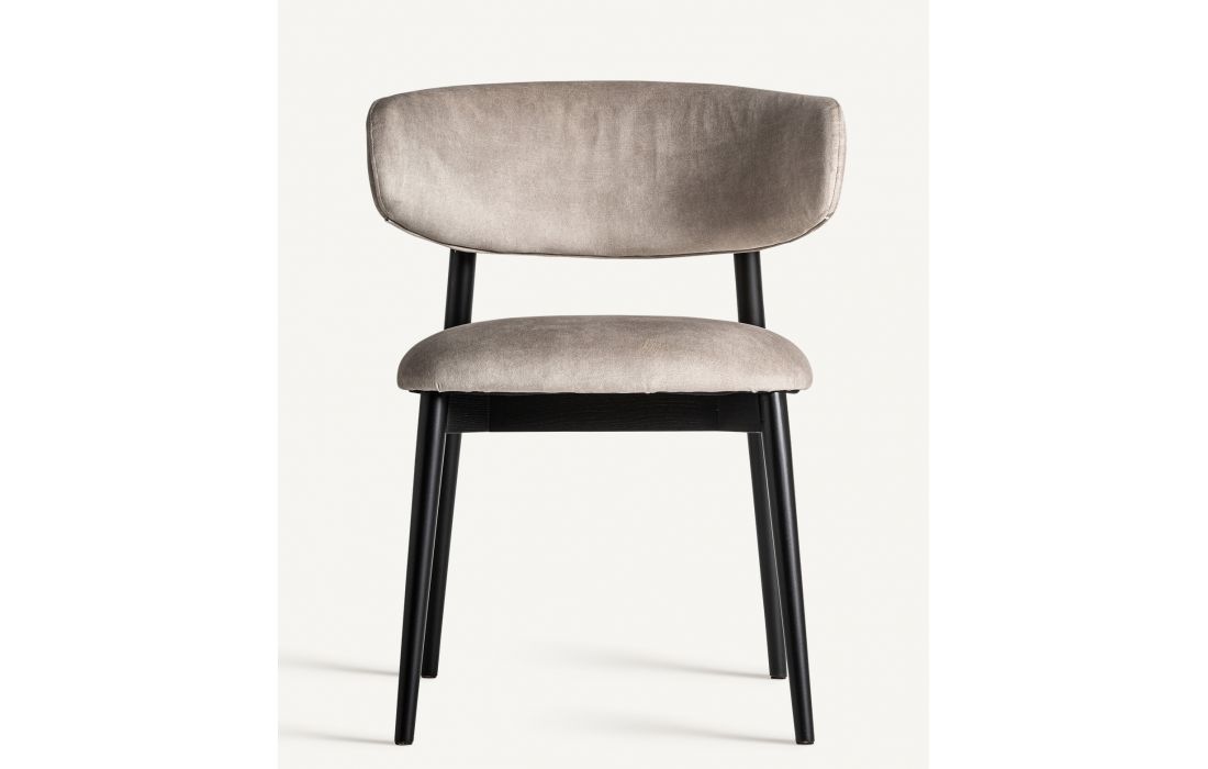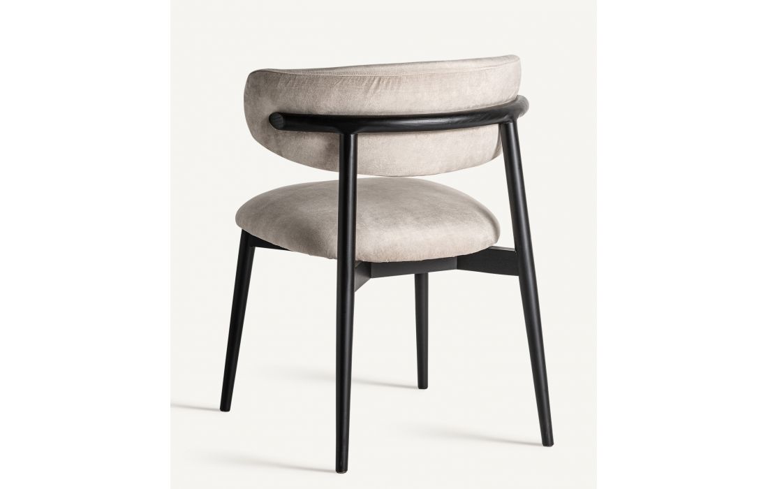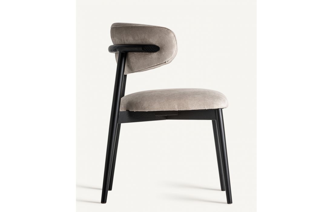 Chair with black maple wood structure, seat and back upholstered in beige polyester fabric