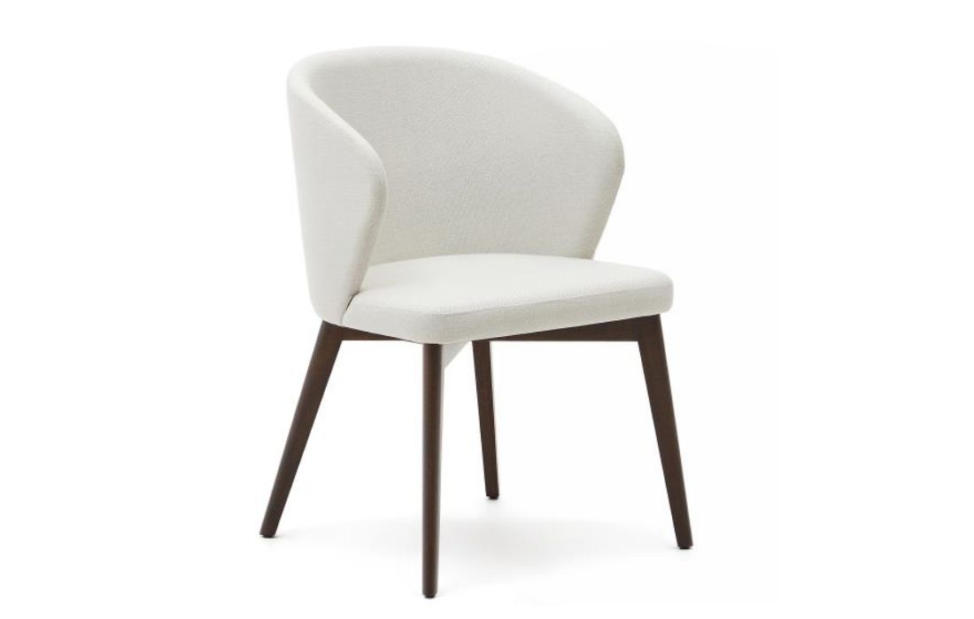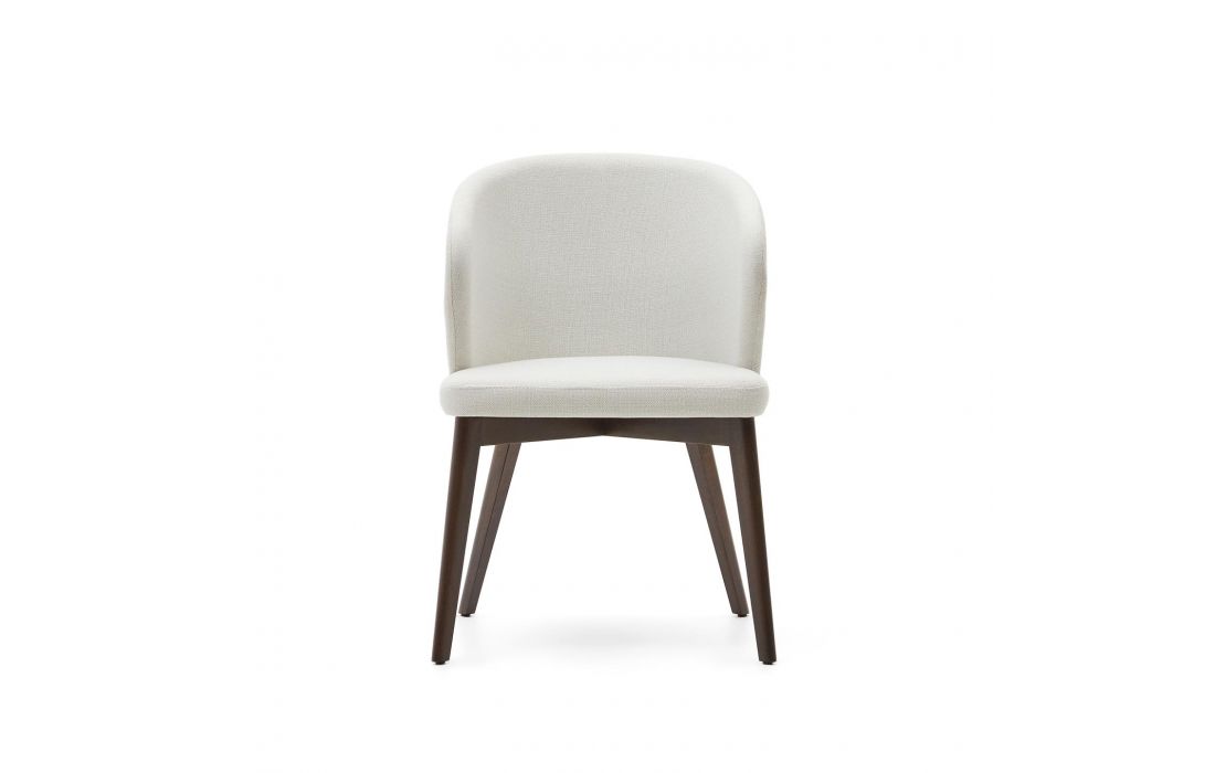 Armchair in beige fabric and brown wood.Dimensions in cm