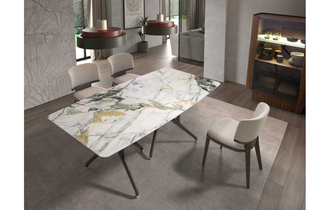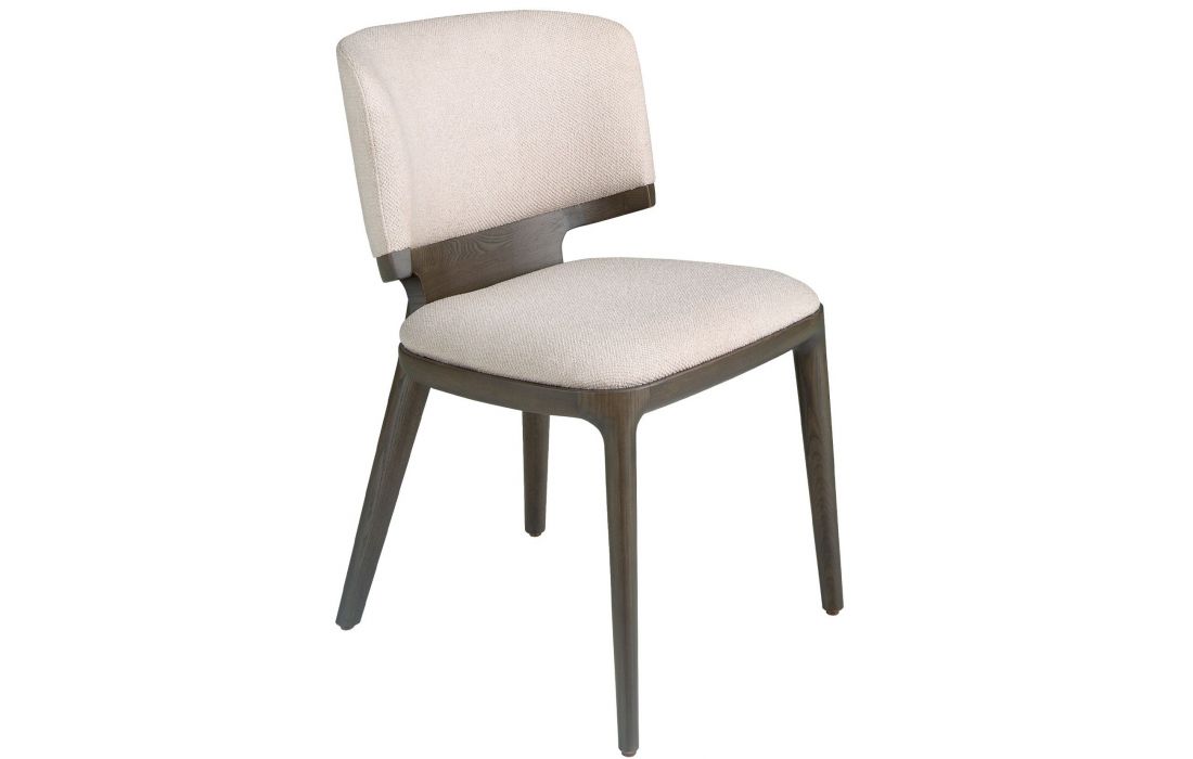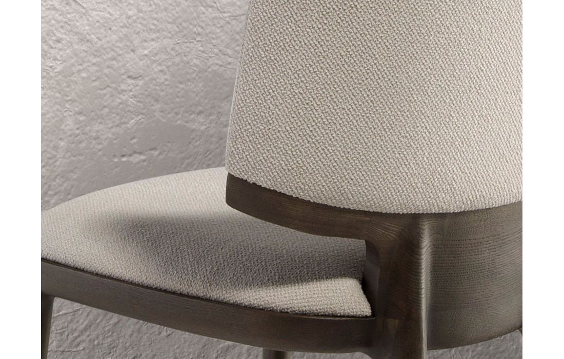 Modern design chair with seat and back upholstered in fabric and dark oak legs, with an avant-garde and timeless styleRecipient :