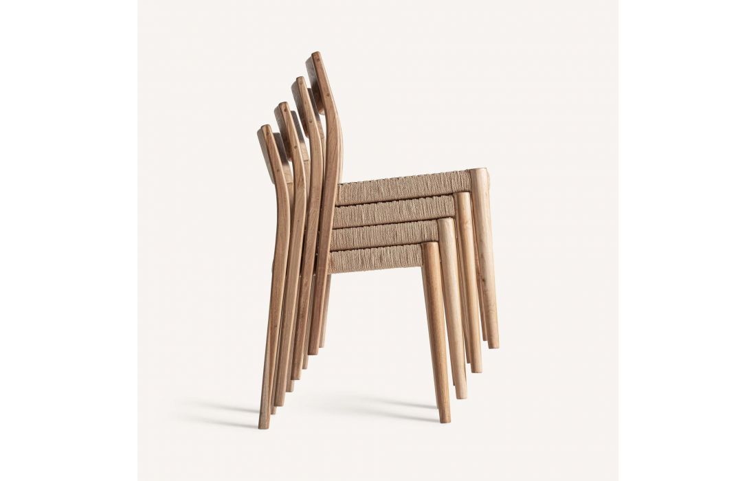 The CAEN CHAIR is inspired by the simplicity of Nordic design, revealing the beauty of teak wood and the natural weave of its seat.Its visual lightness and stackability make it a versatile piece, perfect for residential and commercial spaces.A dialogue between organic matter and clean lines.