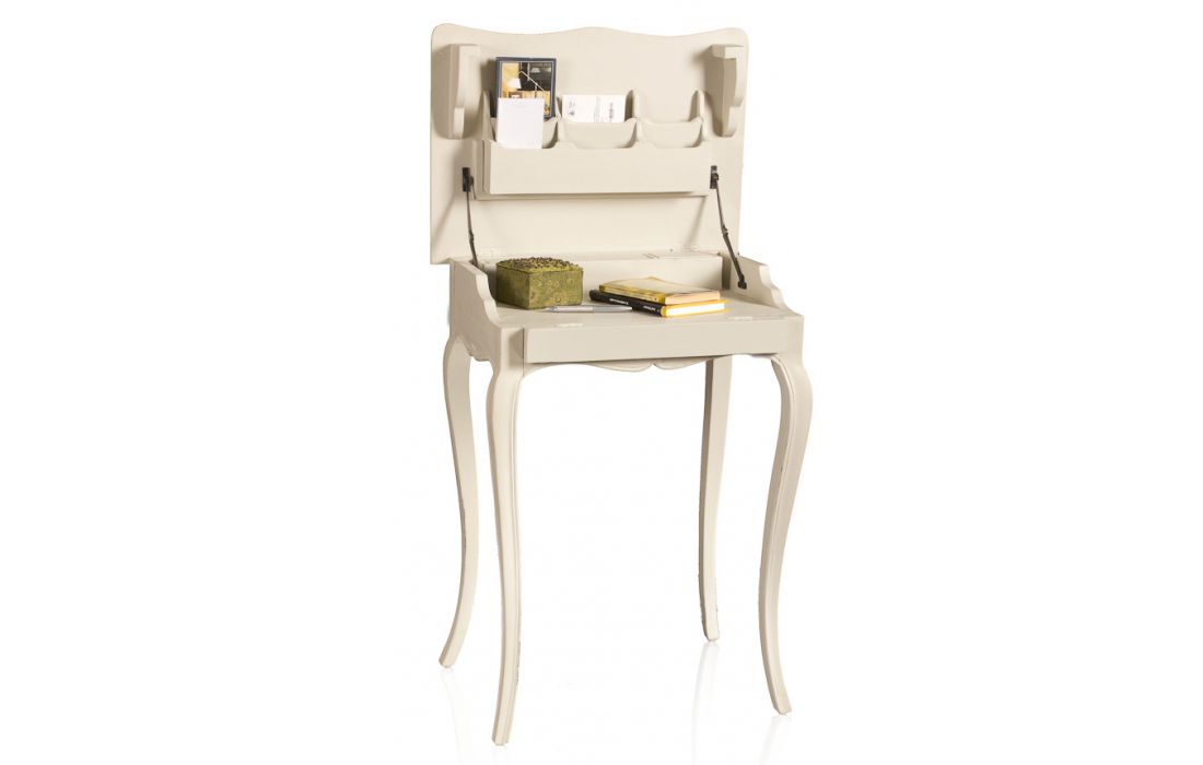 Classic writing desk with open top, wooden frame.