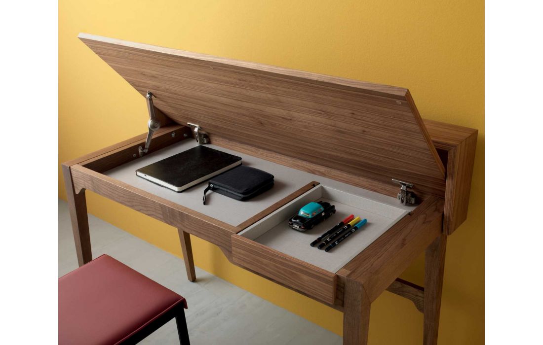 Secretary with structure in walnut or oak burned with 1 drawer and open cover