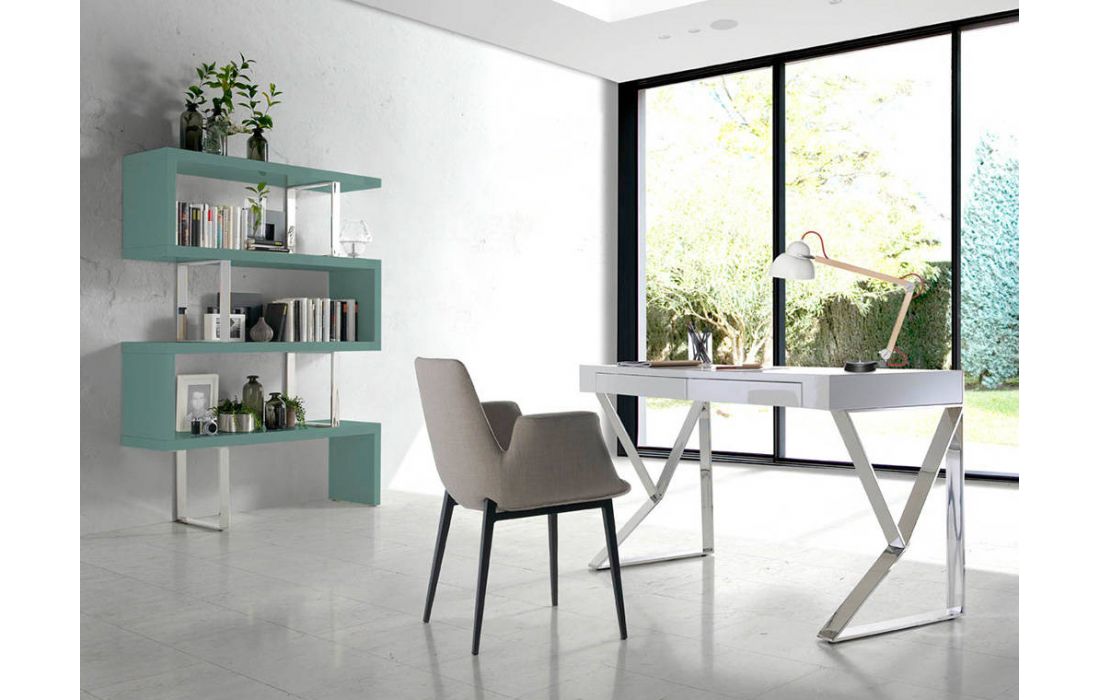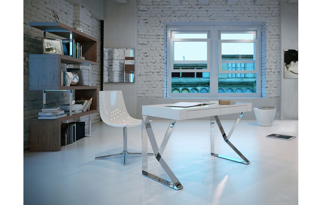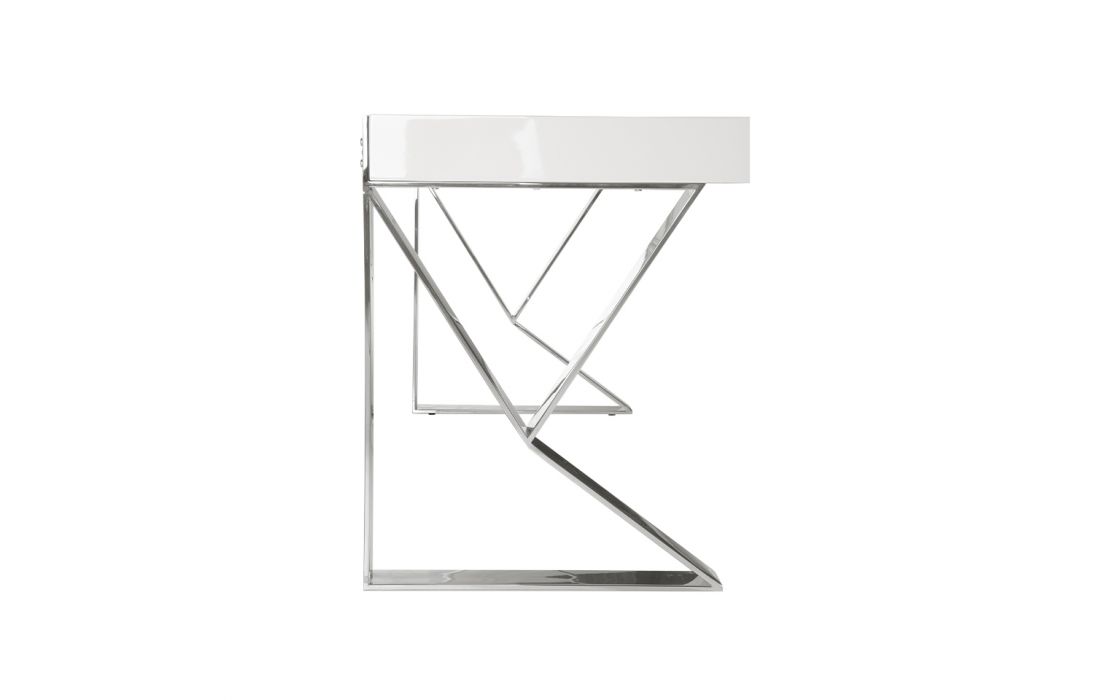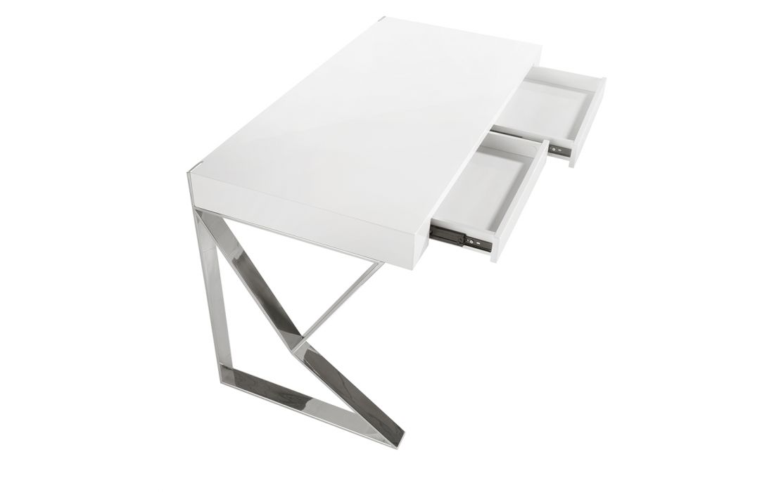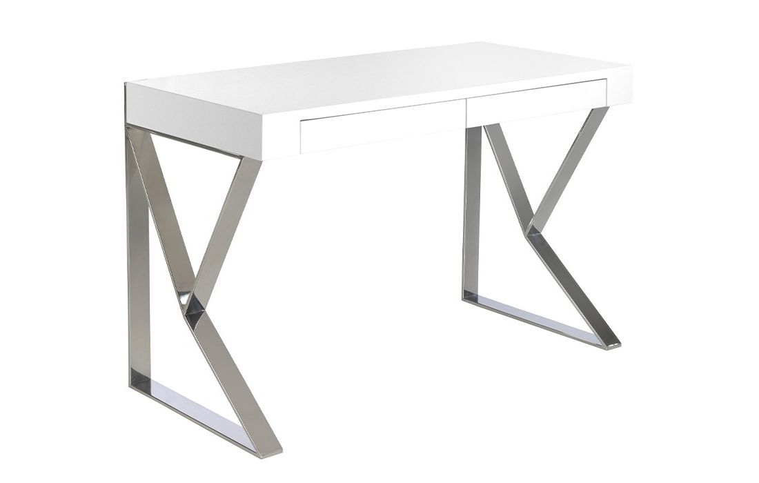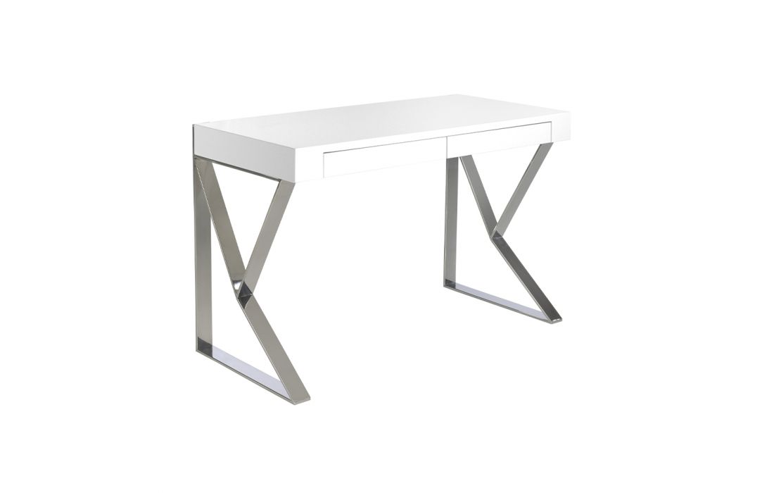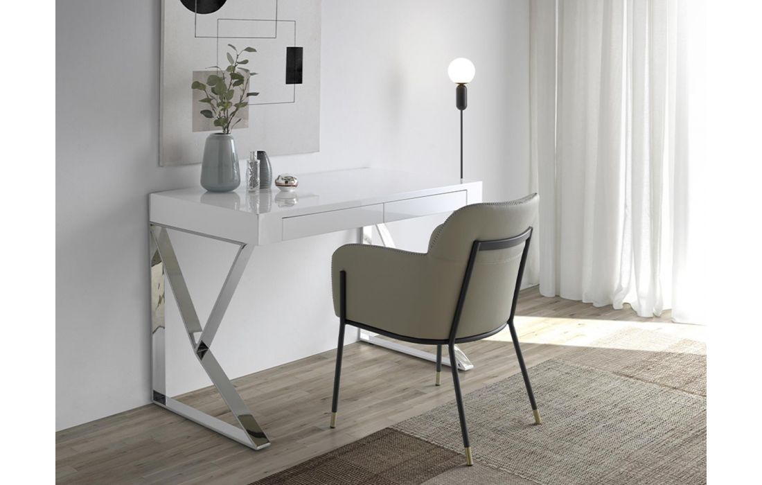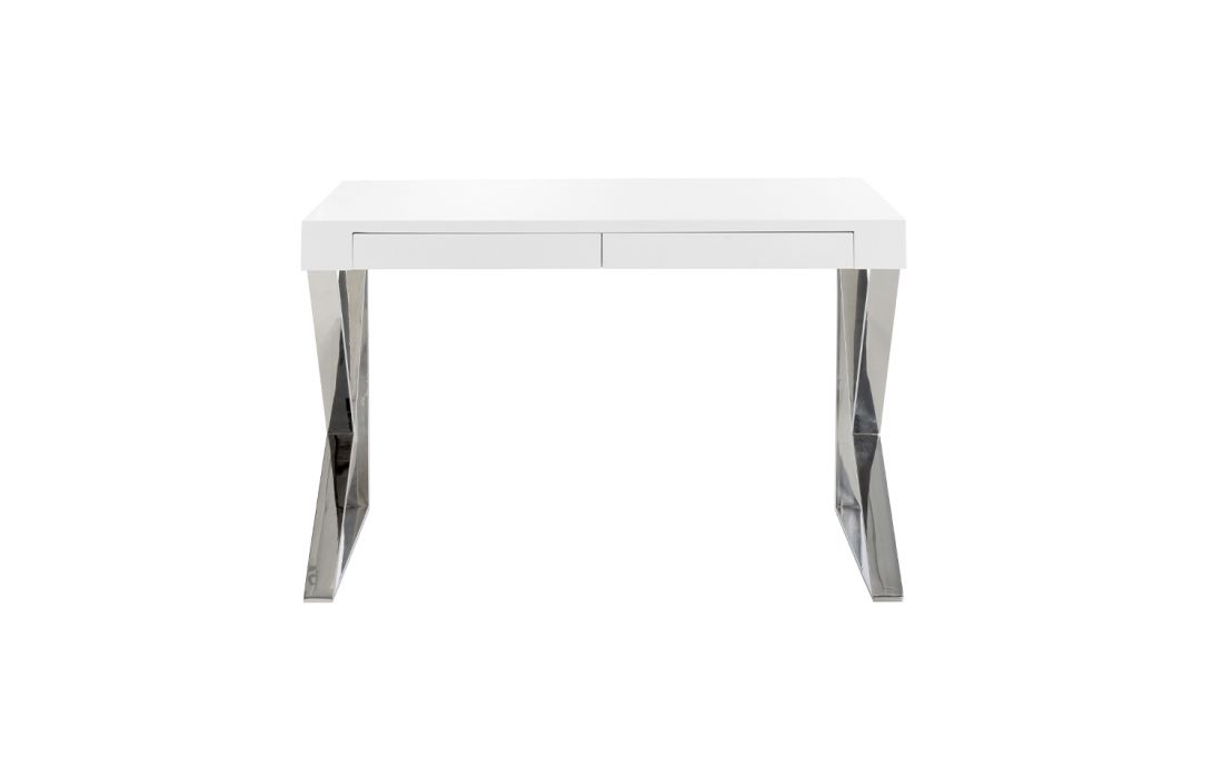 Modern design table made of white MDF, stainless steel legs with 2 drawersRecipient :