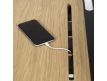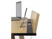 Desk with different areas for the provision of tablets, mobile phones and notebooks. The black lacquered element includes an open central zone for the passage of cables, which contributes to a more wired work area.
