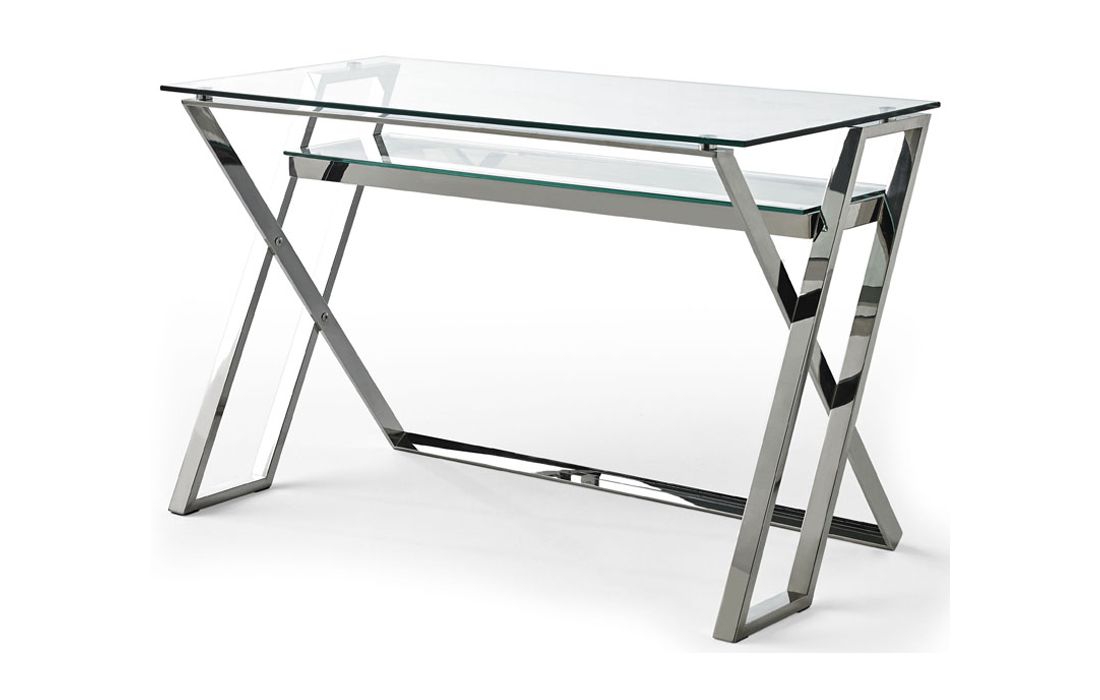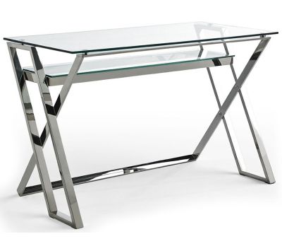 Desk with 10mm tempered glass top, stainless steel feet.