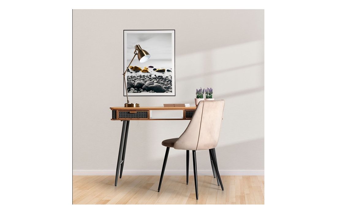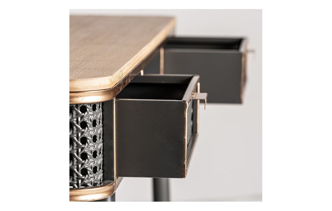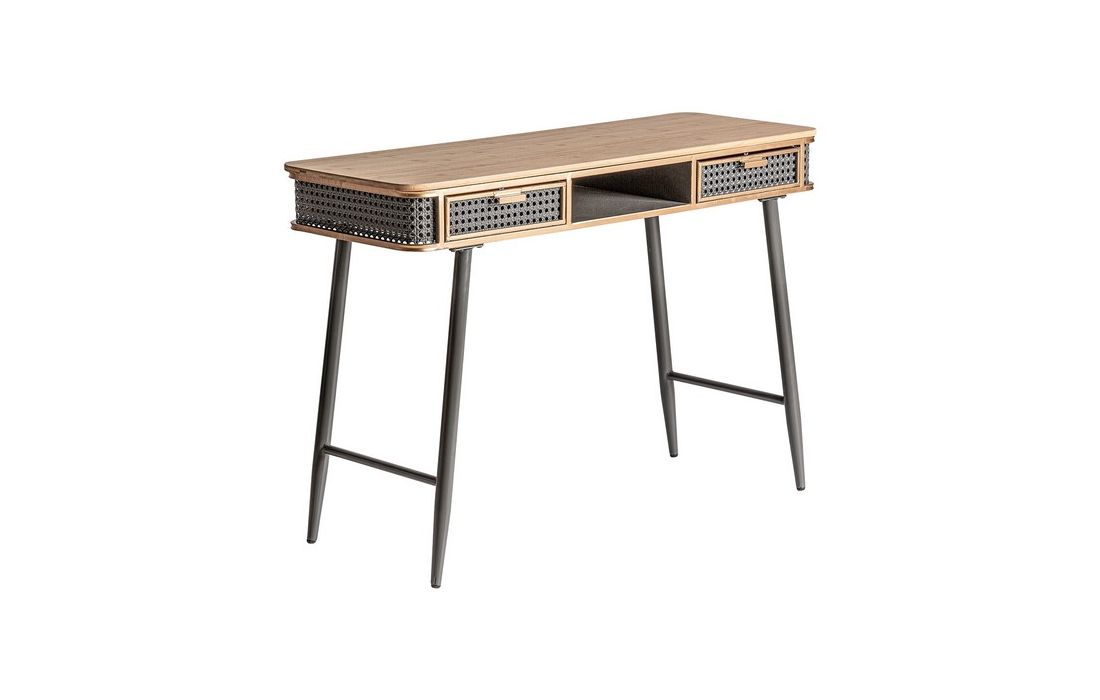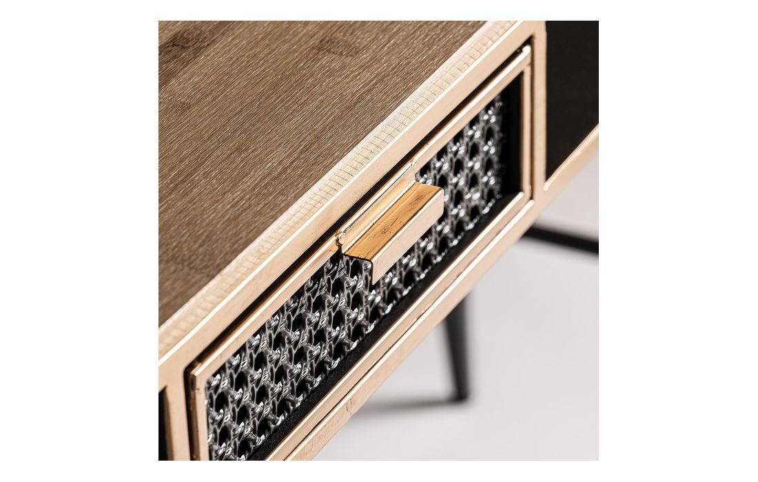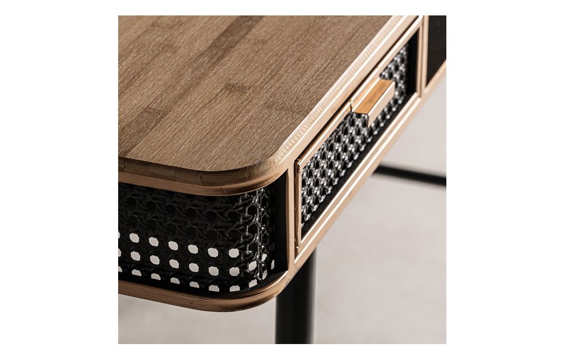 Desk made with an iron structure in gray and gold with a bamboo top in its natural color.