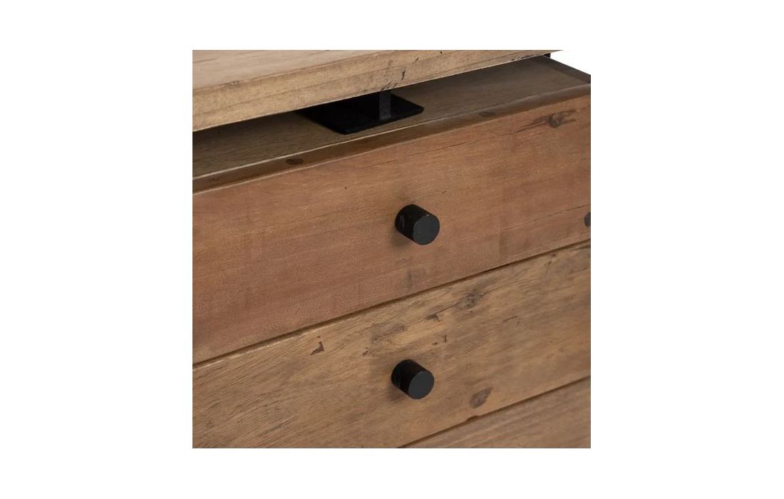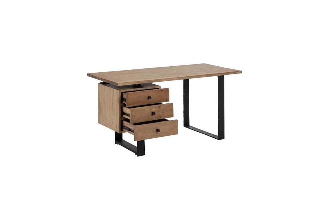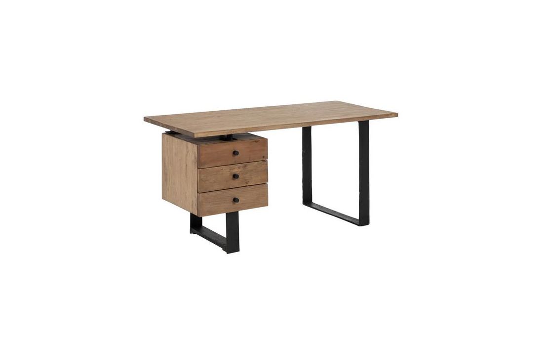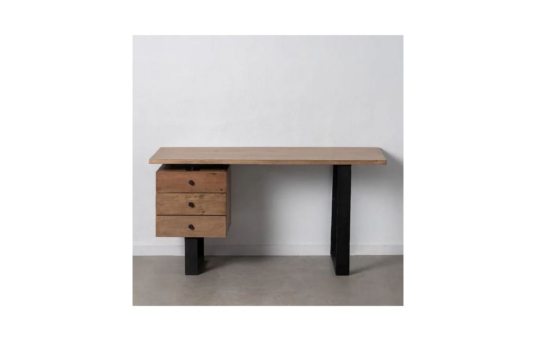 Desk with 3 drawers, feet in black iron and natural woodDimensions in cm