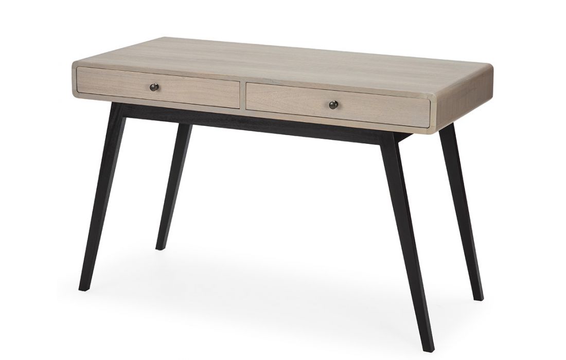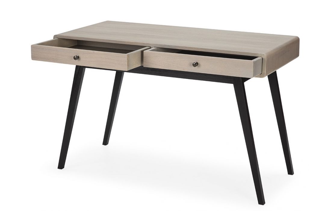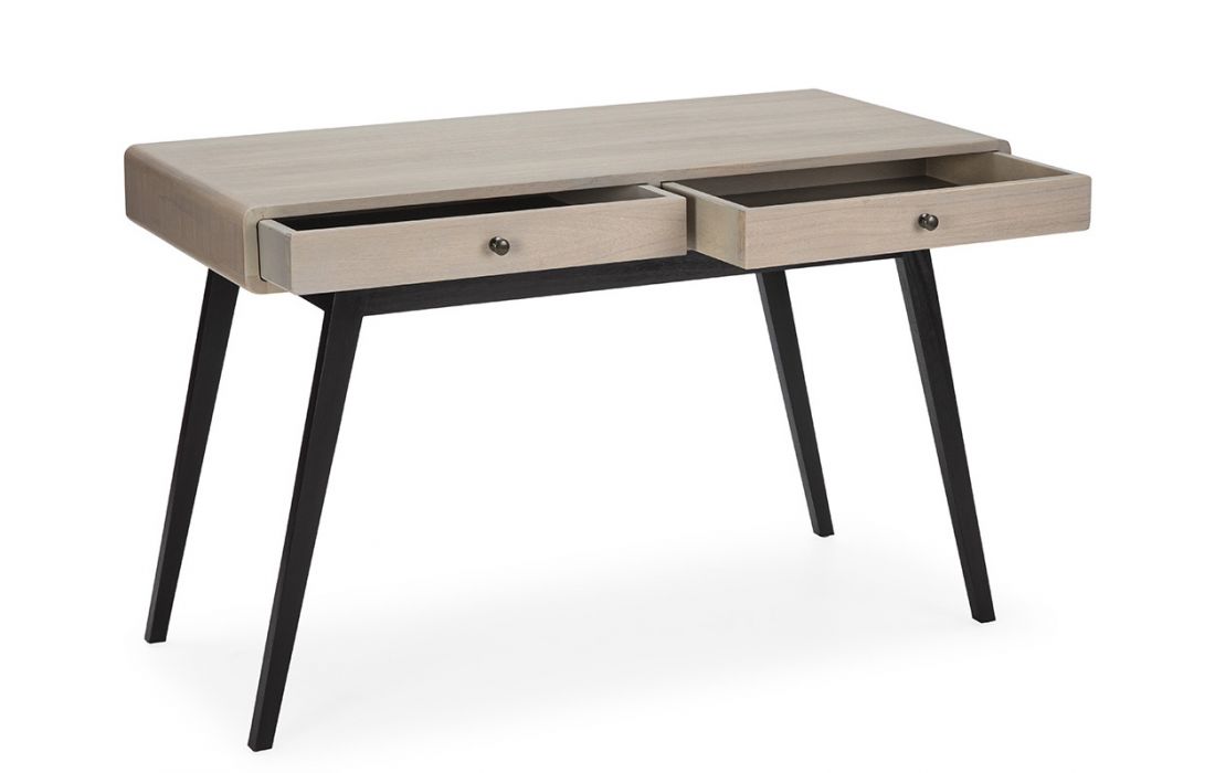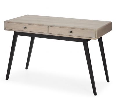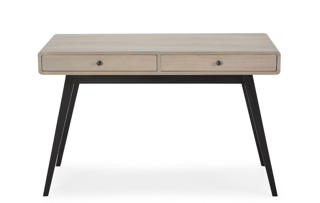 Secretary with 2 drawers in natural wood with gray patina and black base