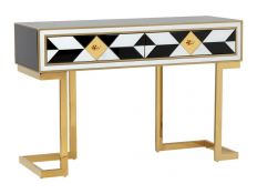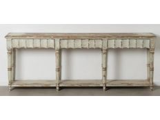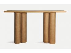 Consola, estrutura realizada em MDF, pés com superfície canelada, acabamento em madeira. Tampo de MDF com superfície em melamina de alta resistência, acabamento pedra mate, com cantos a combinar. Dimensões em cmC 130 P 42 A 78Prazo de Entrega15 a 20 dias