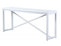 Consola retangular de design moderno, com tampo em mármore porcelânico e pés em aço inoxidávelDimensões em cmC 150 P 50 A 80Prazo de Entrega10 a 20 dias