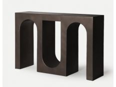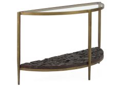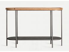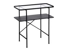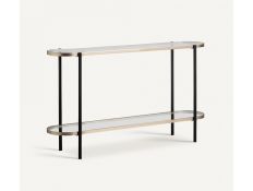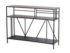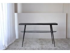 Consola realizada em metal, lacada a preto mate e madeira de nogueira e tampo laminado de porcelânicoDimensões em cmL 130 P 42 A 78Prazo de Entrega5 a 10 dias