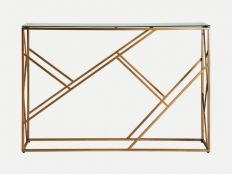 Consola realizada em vidro temperado e curvado de 12 mm com estante em MDF, acabamento imitação mármore brancoDimensões em cmL 125 P 40 A 76Prazo de Entrega5 a 10 dias