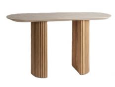 Consola com estrutura realizada em MDF, pés com superfície canelada, acabamento em madeira e tampo de MDF com superfície em melamina e pedraDimensões em cmL 130 P 42 A 78Prazo de Entrega5 a 10 dias