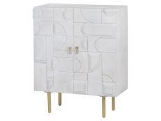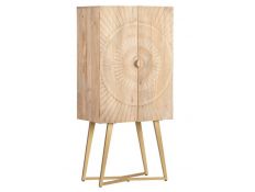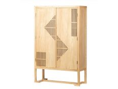 O MÓVEL ALTO CLAUX em madeira de alça alta em tom marrom natural, ideal para um toque moderno e artístico. Suas portas apresentam um design geométrico que cria um contraste visual atraente. Dimensões em cmL 81 P 40 A 142Prazo de Entrega15 a 20 dias