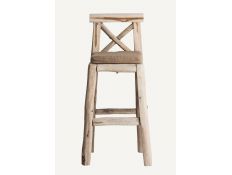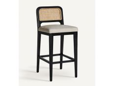 Banco bar estilo colonial feito em madeira de pinho, rattan e tecido nas cores branco e preto Prazo de Entrega10 a 20 diasDimensões em cmL 46 P 52 A 107