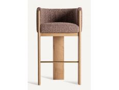 Banco bar estilo contemporâneo feito em madeira de seringueira, aço e tecido aveludado nas cores castanho e bege Prazo de Entrega10 a 20 diasDimensões em cmL 61 P 68 A 97