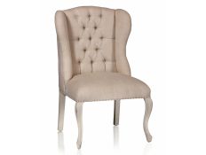 Prazo de entrega: 30 a 45 diasCadeira com costa e assento em tecido, estrutura em madeira, design provençal com possibilidade de vários acabamentos e revestimentos.